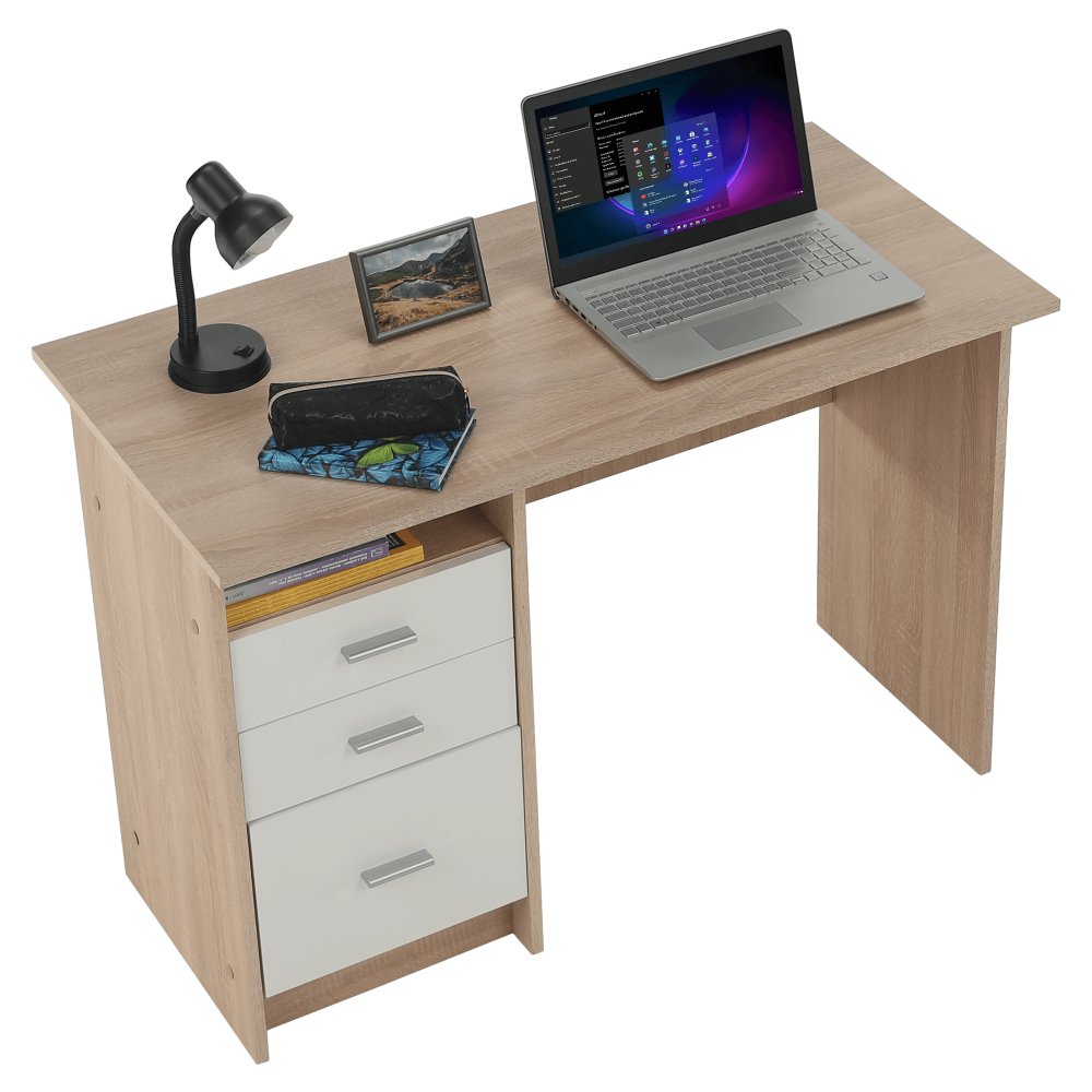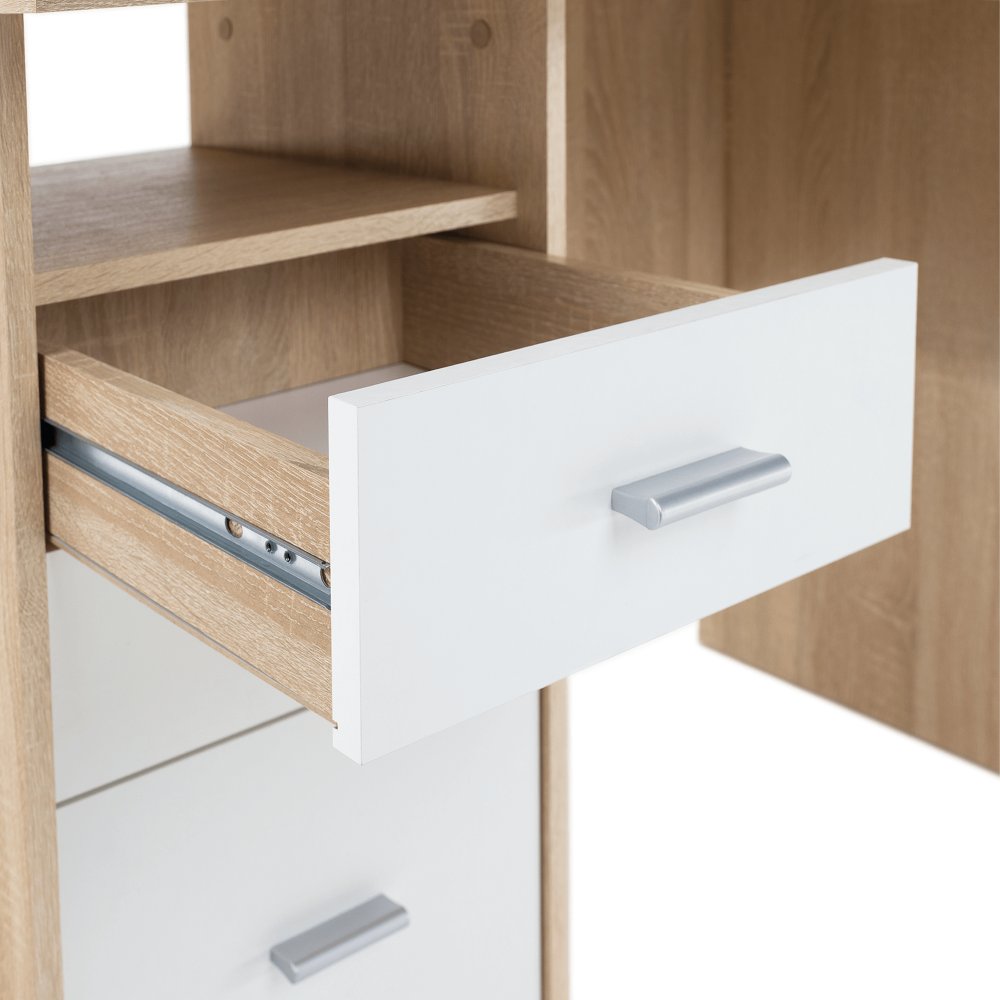 KONDELA PC stôl, dub sonoma/biela, SAMSON NEW