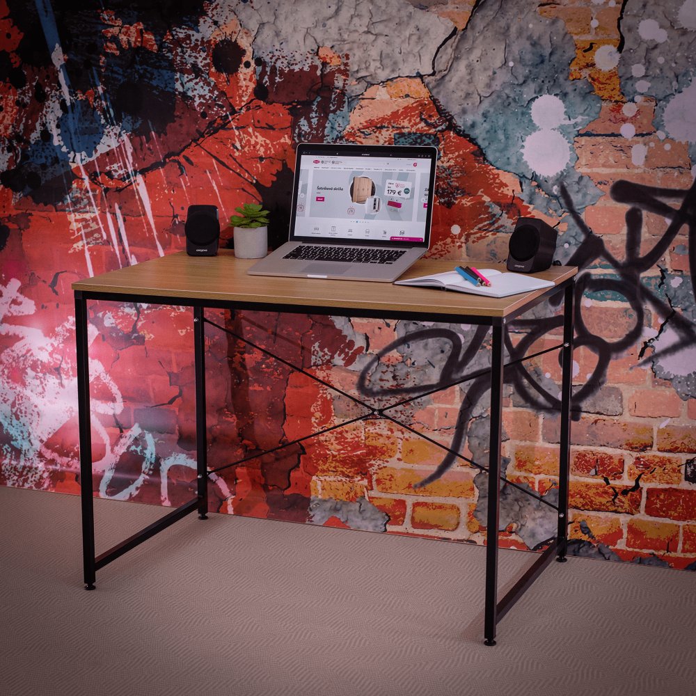 KONDELA Písací stôl, dub/čierna, 100x60 cm, MELLORA