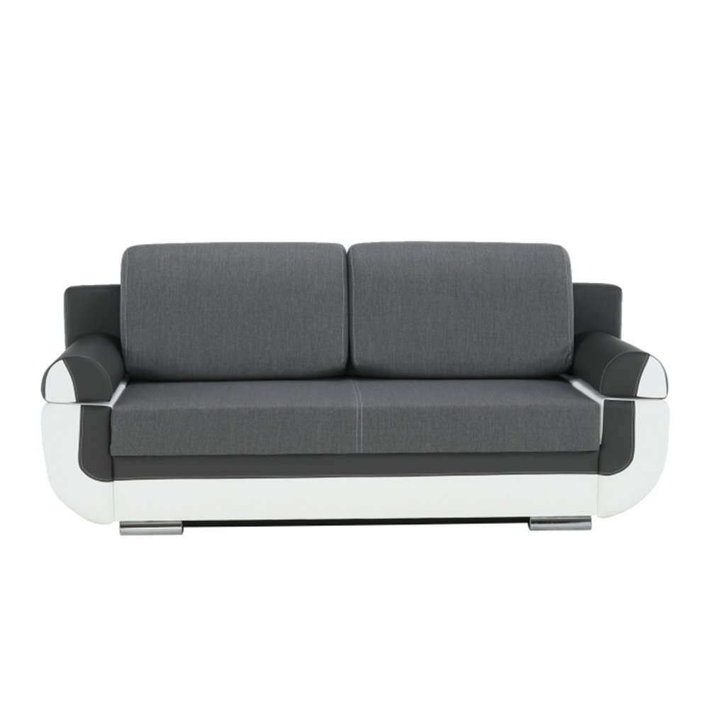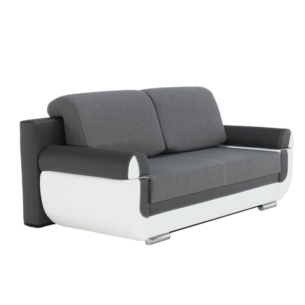 KONDELA Pohovka, ekokoža biela+sivá/látka sivá, KARDYN