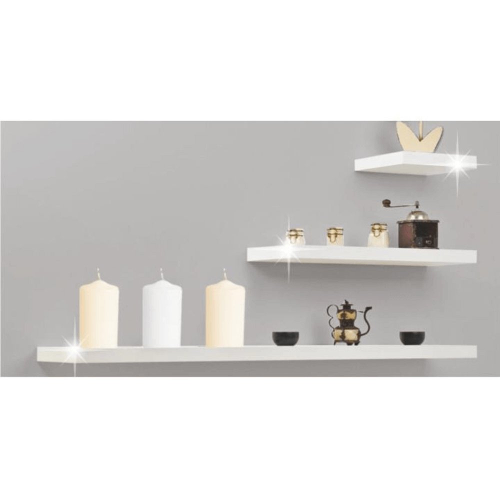 Polica, ktorá sa stáva súčasťou steny vďaka skrytému nástennému kovaniu.