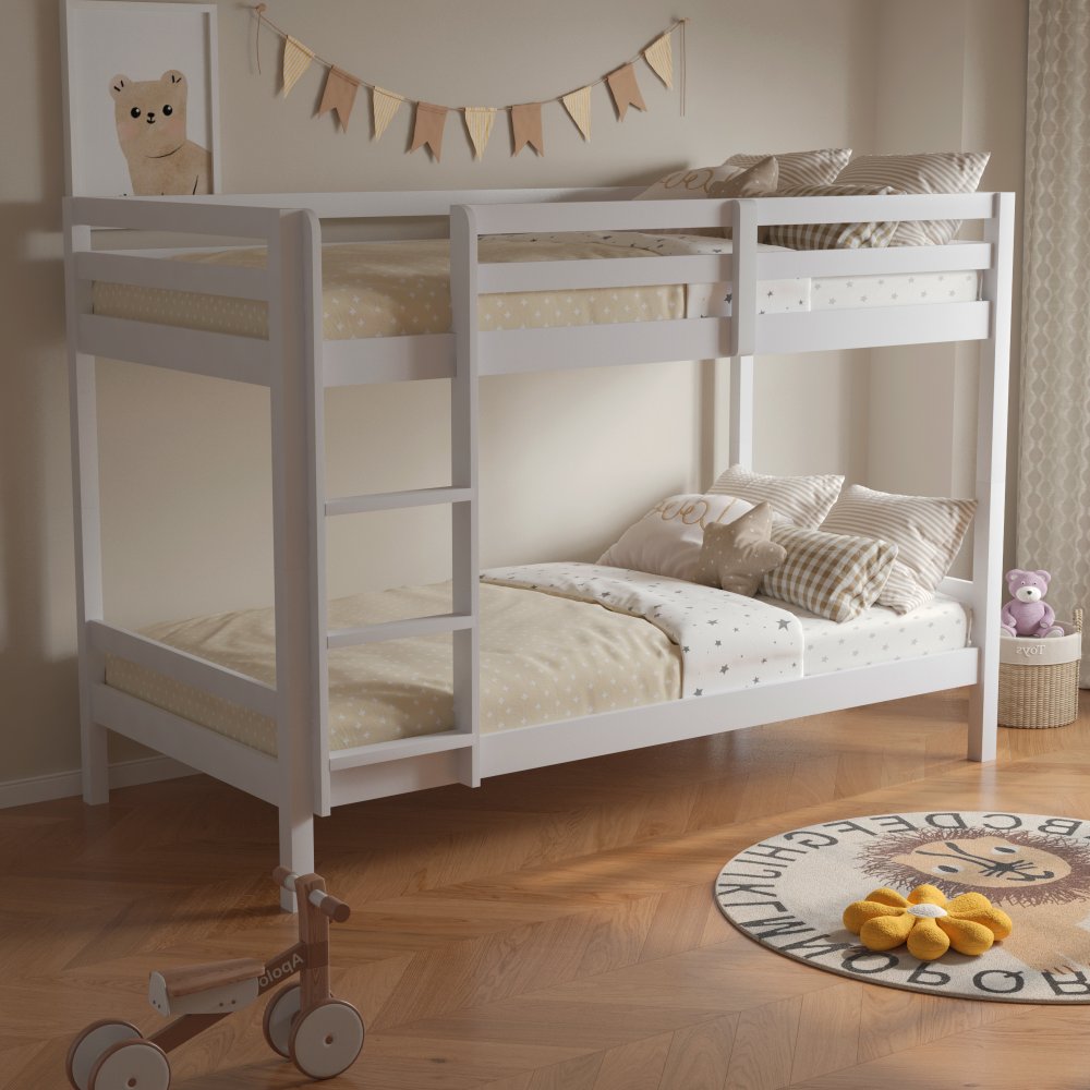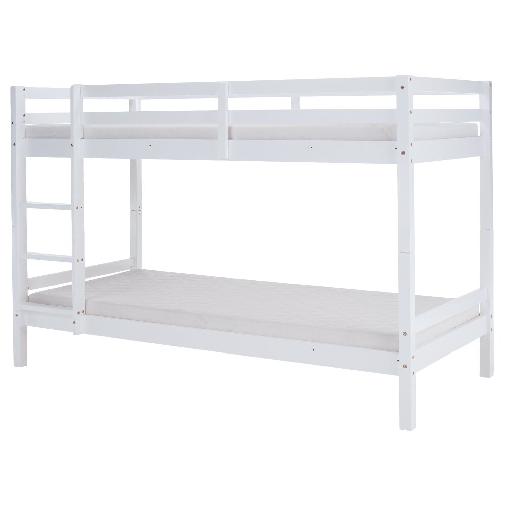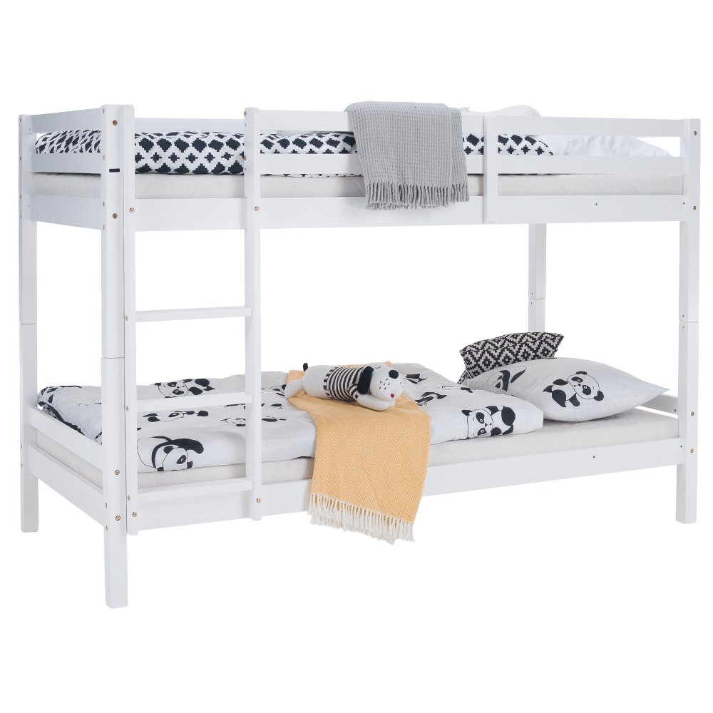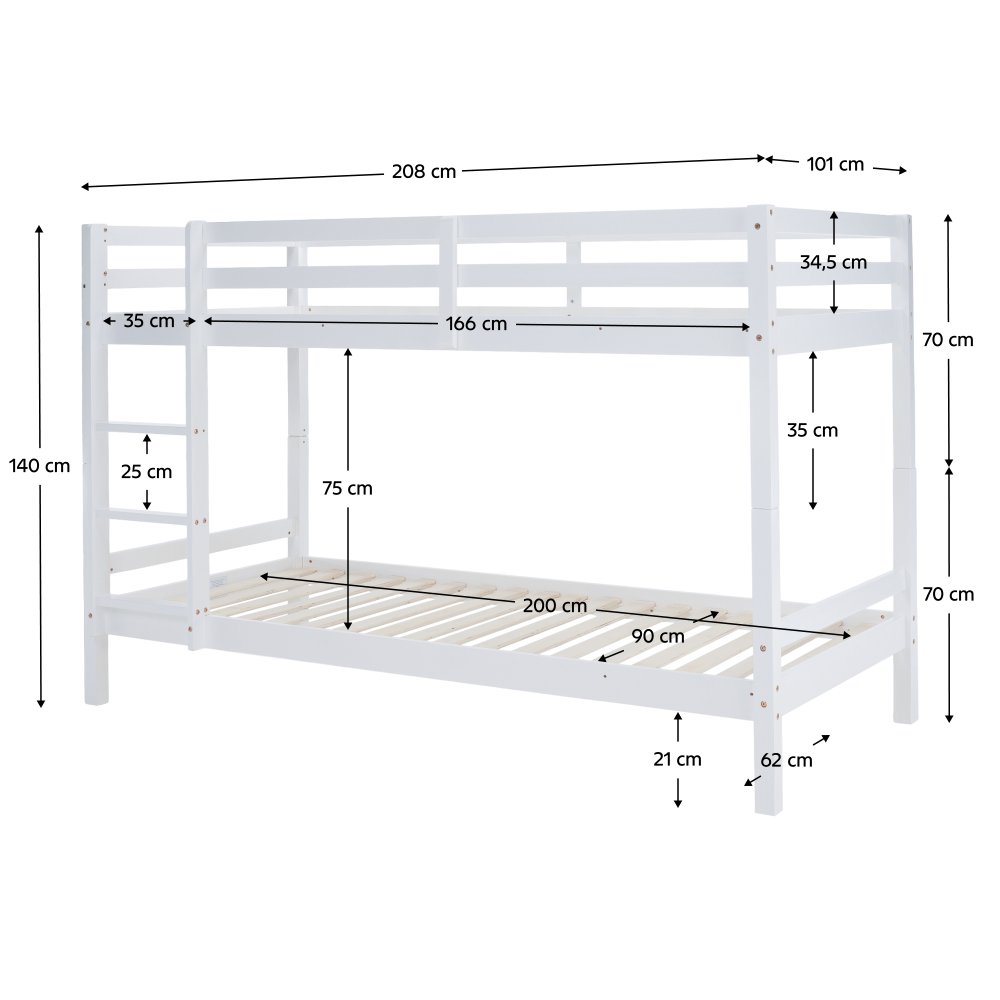 KONDELA Poschodová posteľ, 90x200, masívne drevo, biela, INEZA