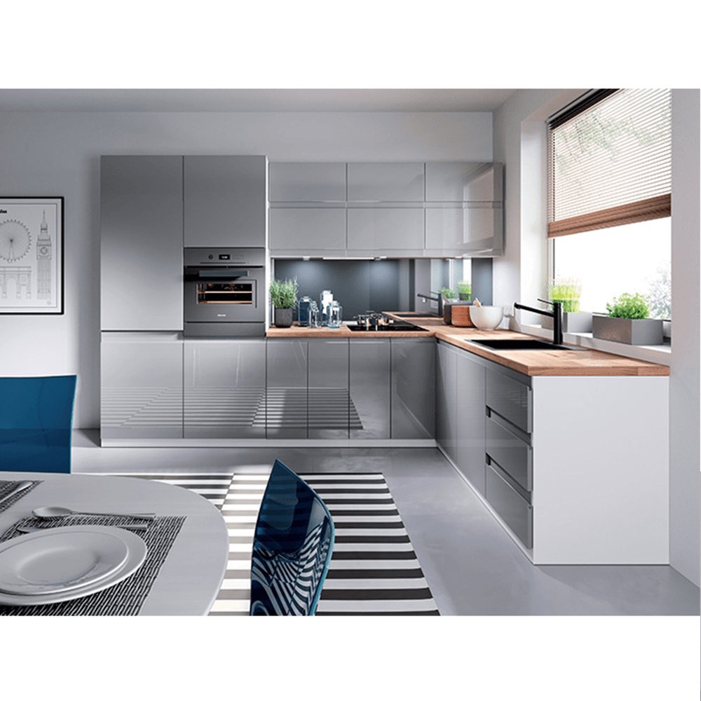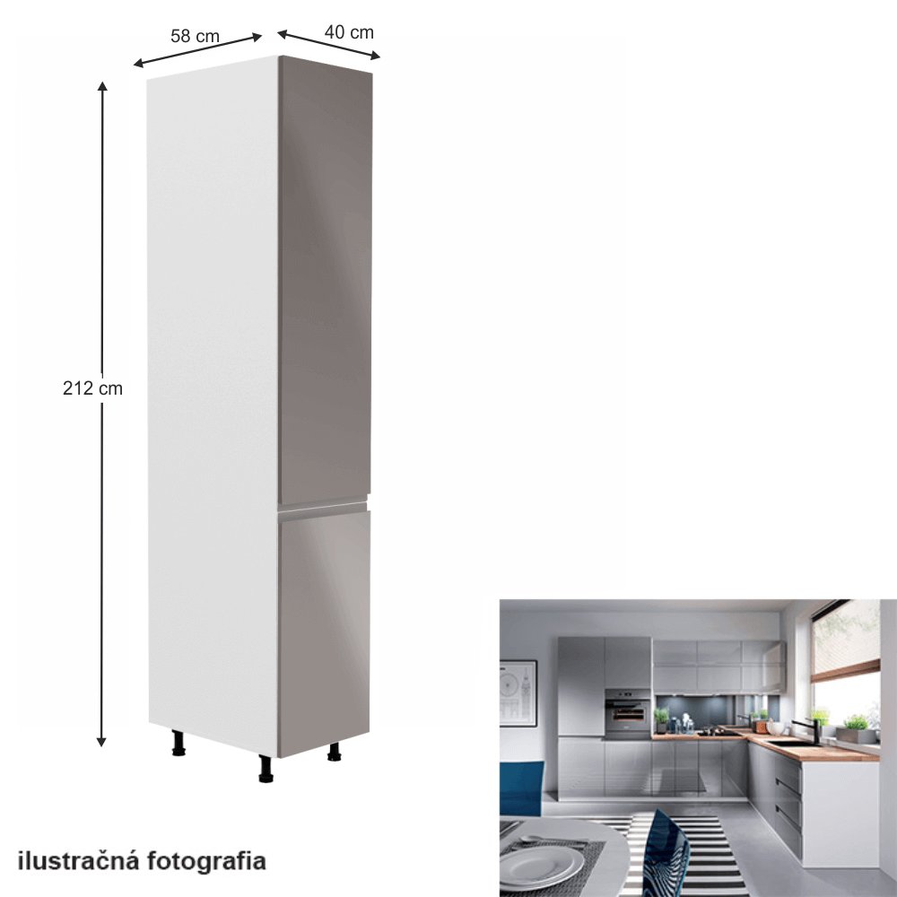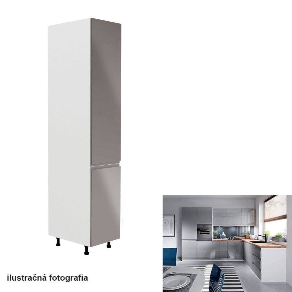 KONDELA Potravinová skrinka, biela/sivá extra vysoký lesk, pravá, AURORA D40SP