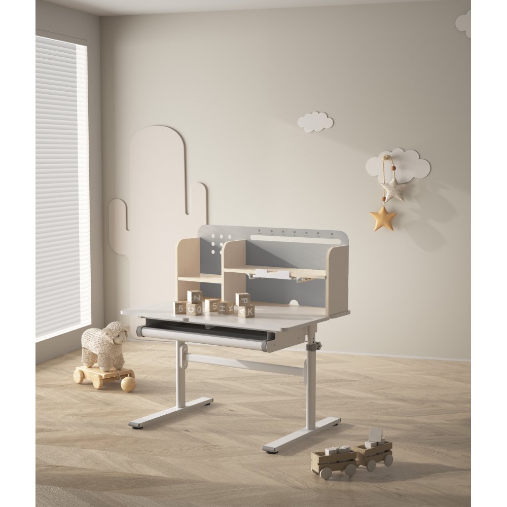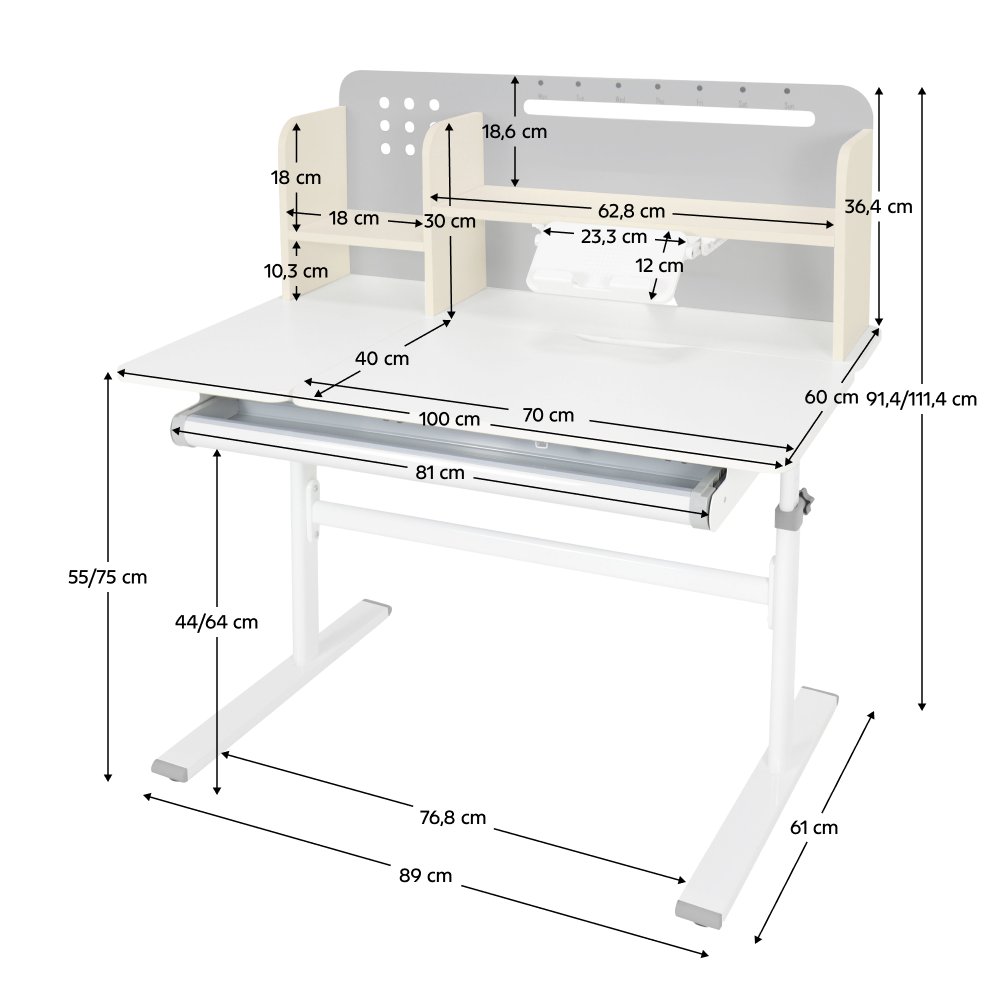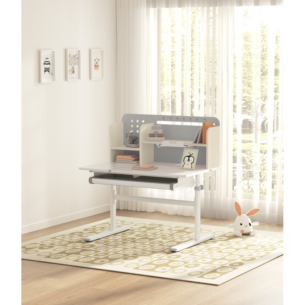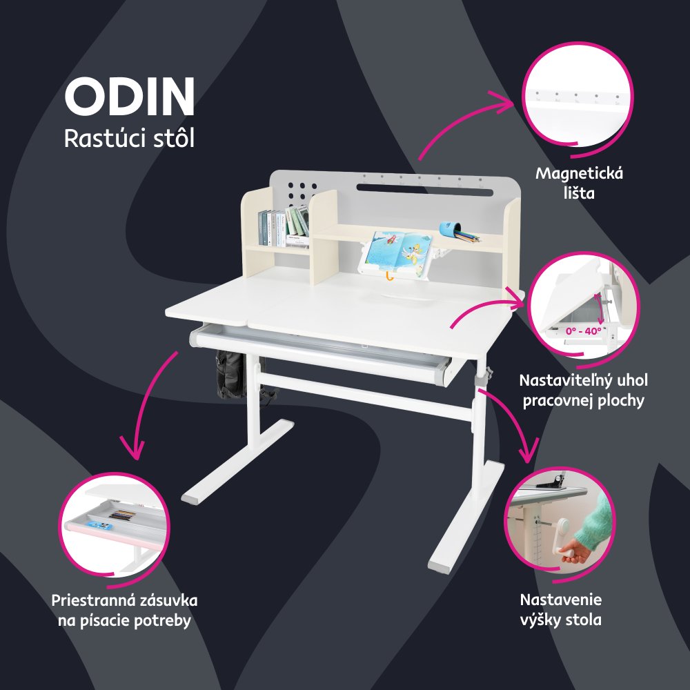 KONDELA Rastúci písací stôl, sivá/biela, ODIN