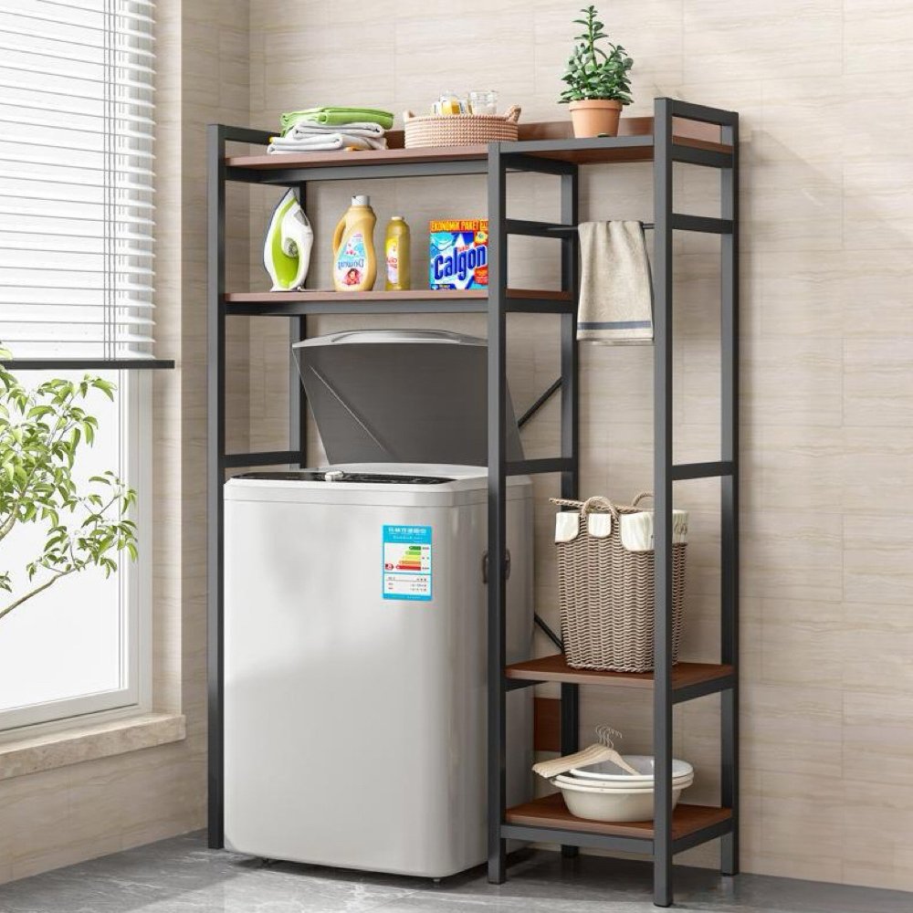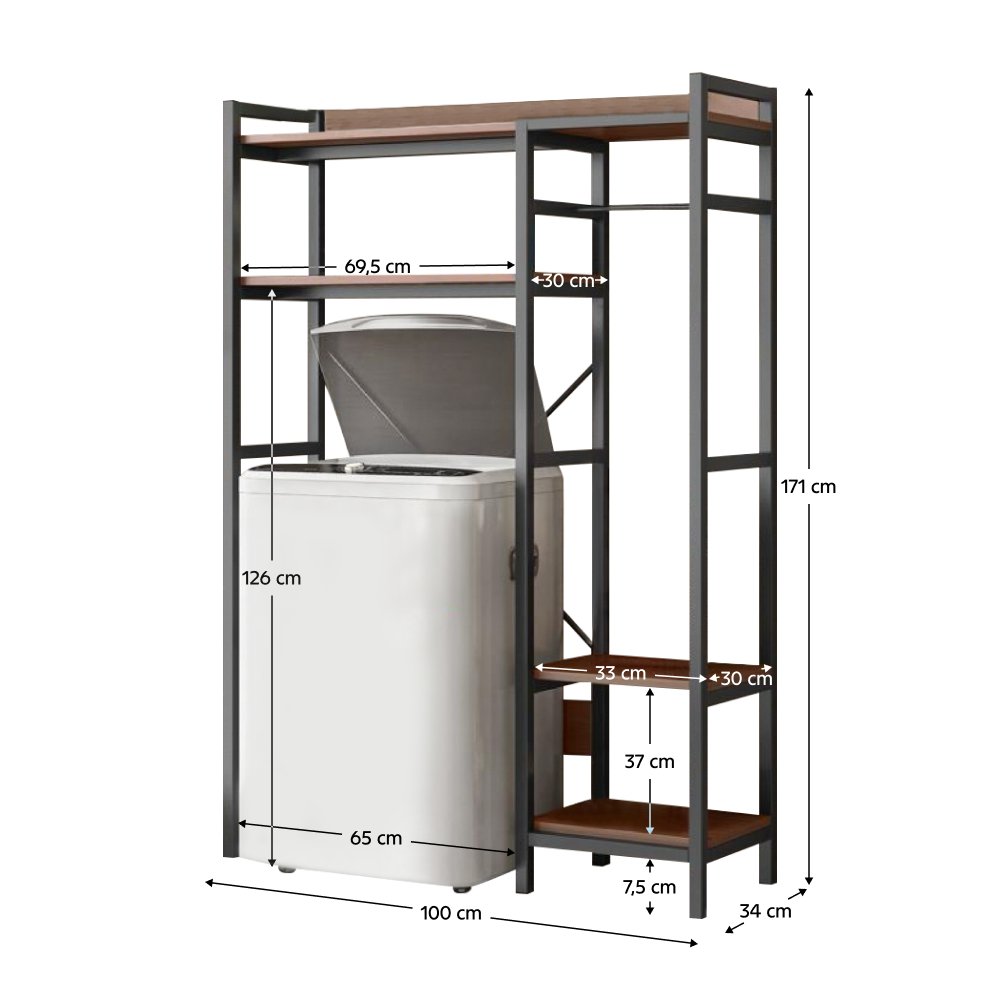 KONDELA Regál nad práčku, dub tmavý/čierna, DELSIN