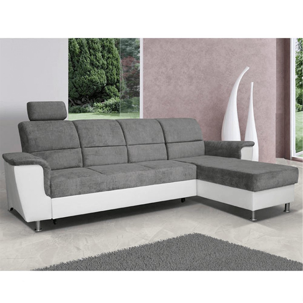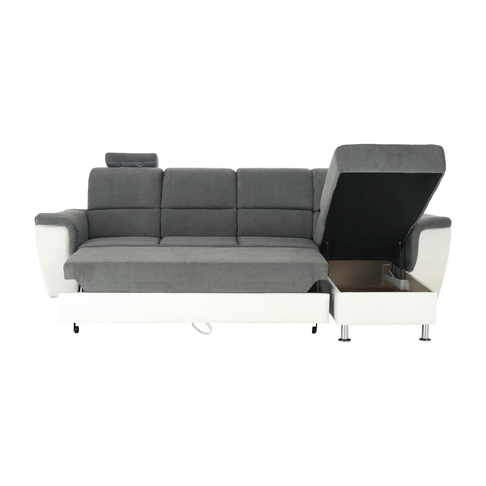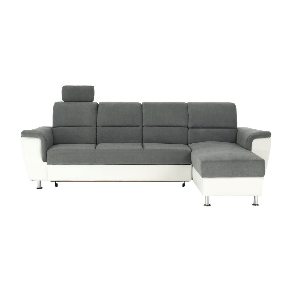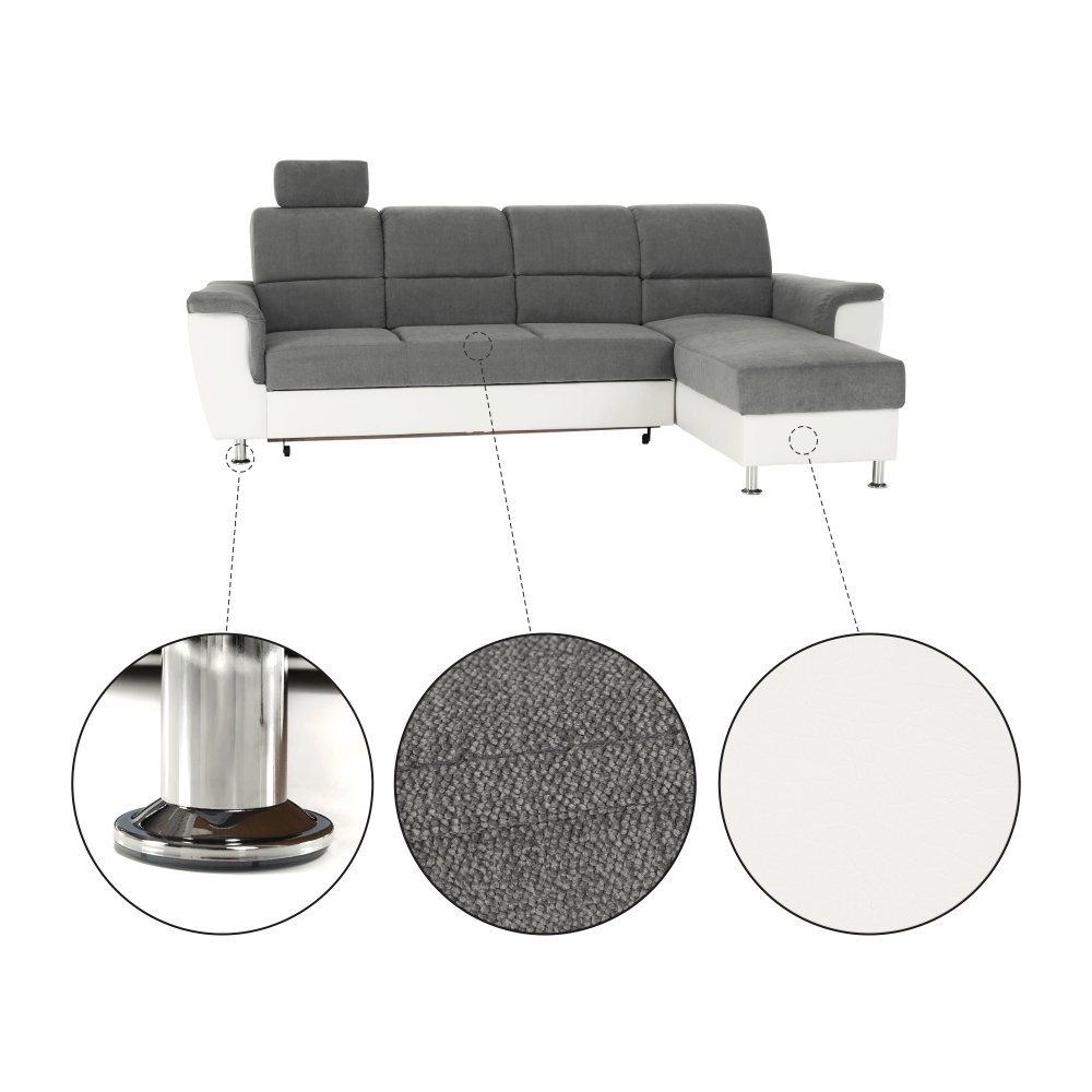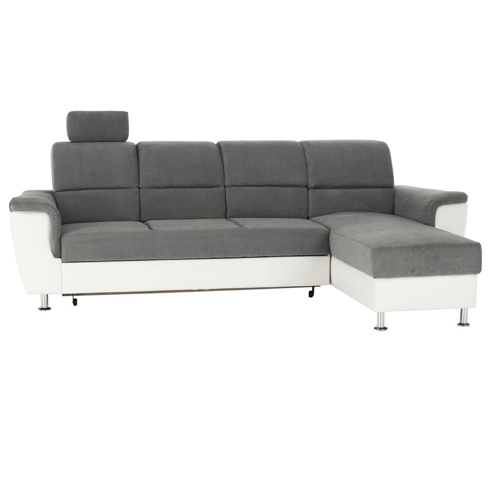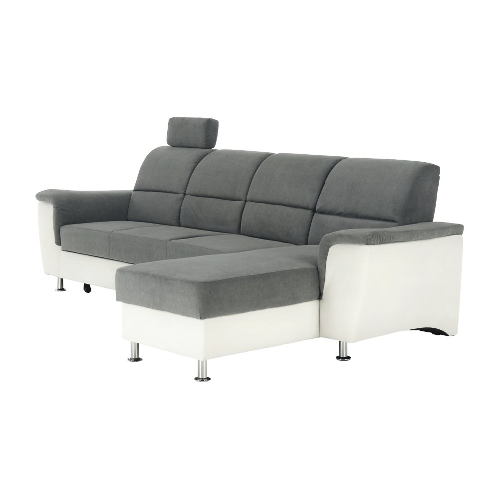 KONDELA Roh malý, ekokoža biela/látka sivá, pravá, SANTIAGO