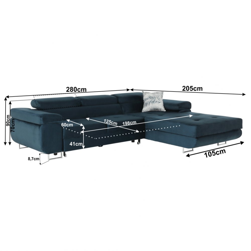 Rozmery (ŠxHxV): 280x205x70/90 cm