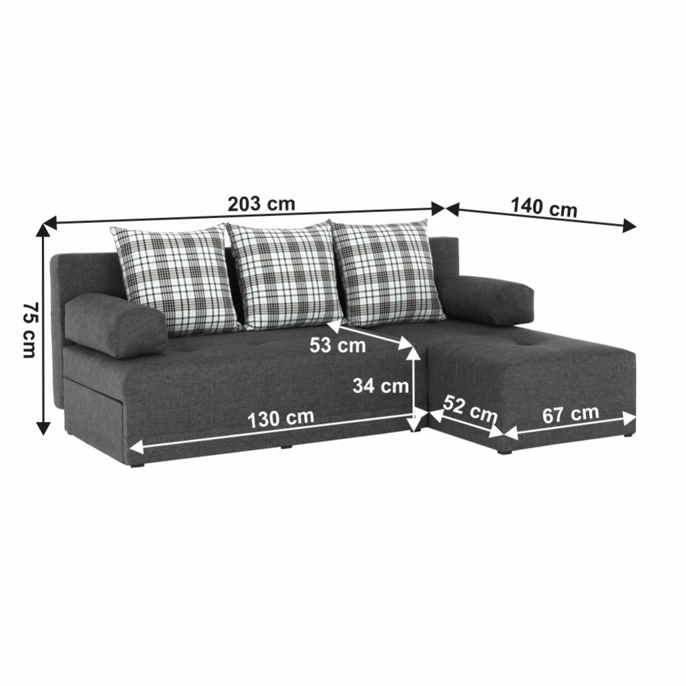 Rozmery: ŠxHxV: 203x140x75 cm, plocha na spanie: ŠxD: 127x203 cm