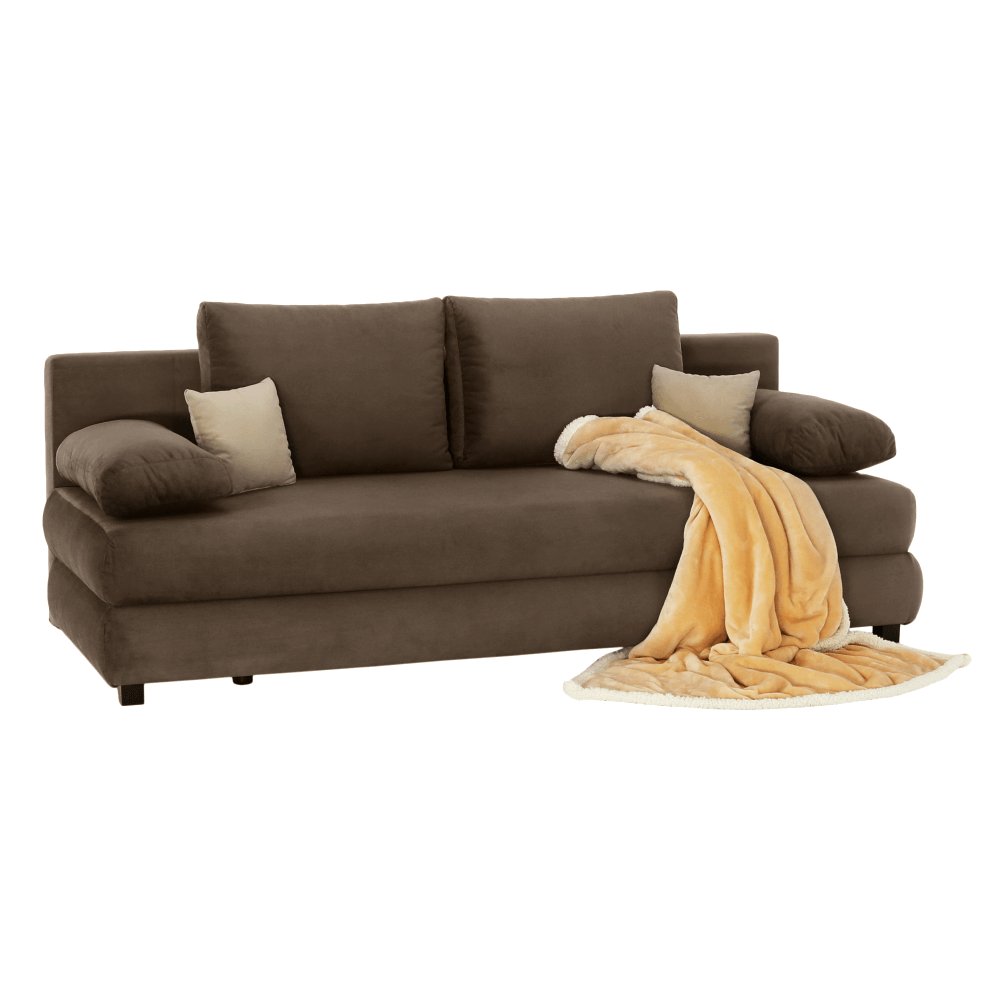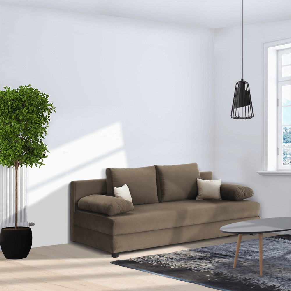 Rozkladacia pohovka CLIV s úložným priestorom vo farebnom prevedení cappuccino látka Aria/béžová.