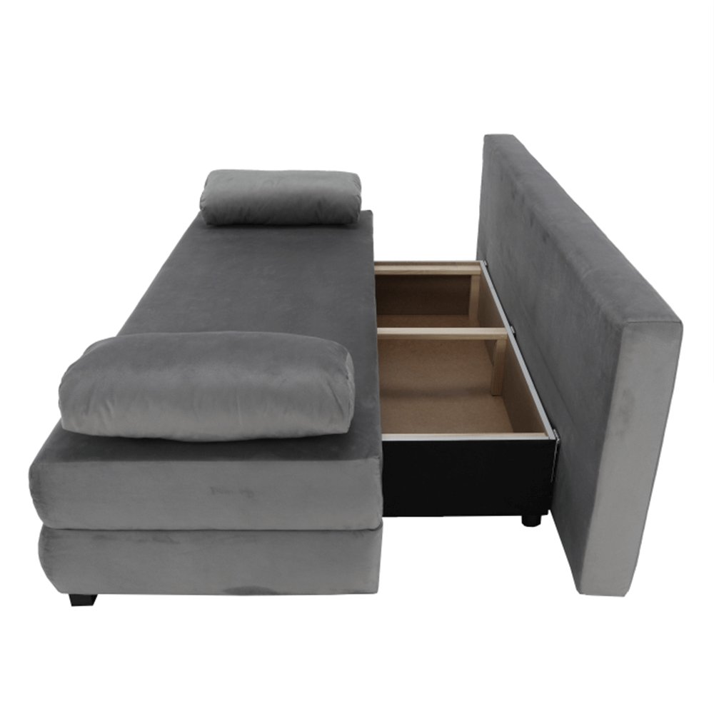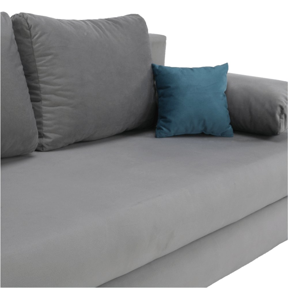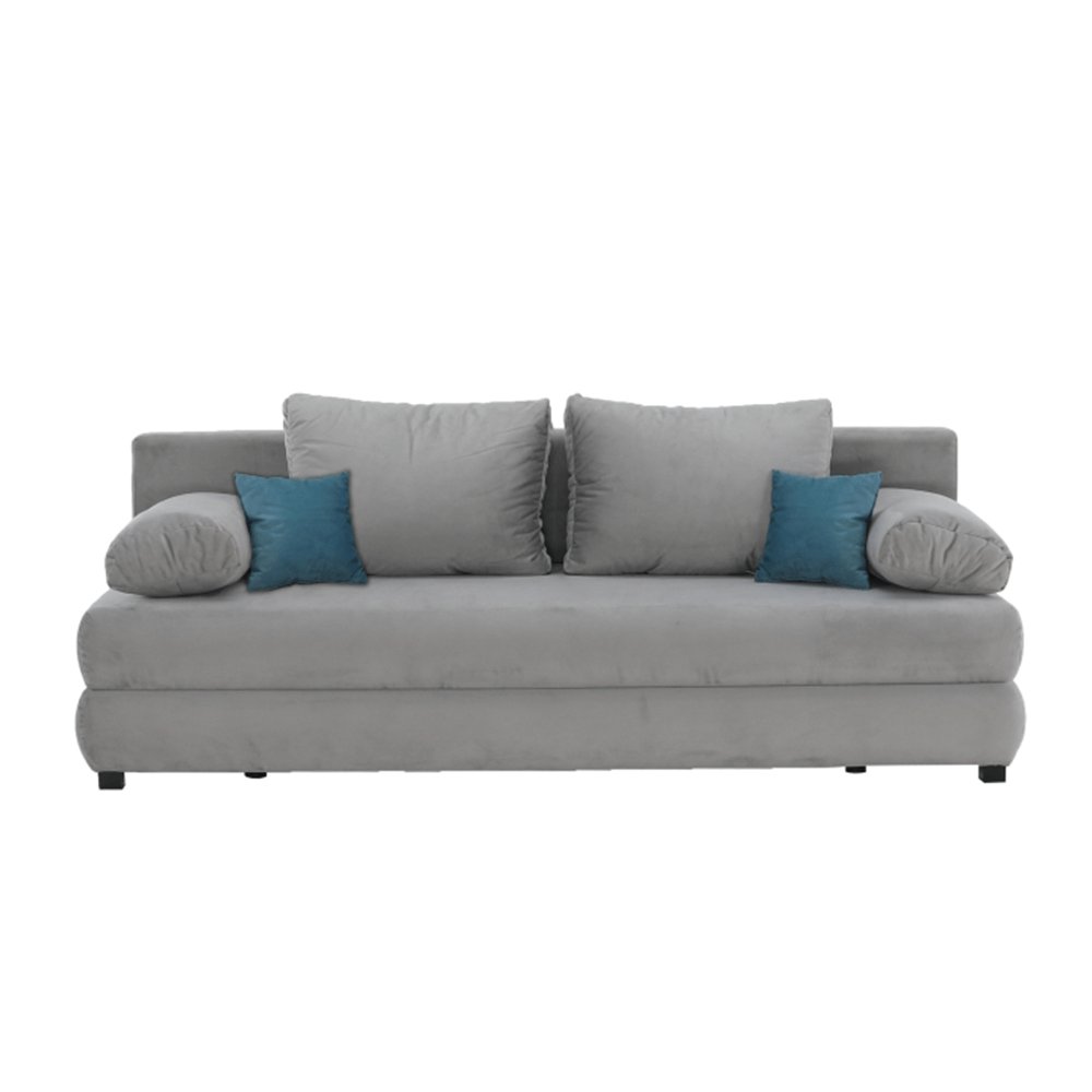 Rozkladacia pohovka CLIV s úložným priestorom vo farebnom prevedení sivá látka Aria 15/ tyrkysová.