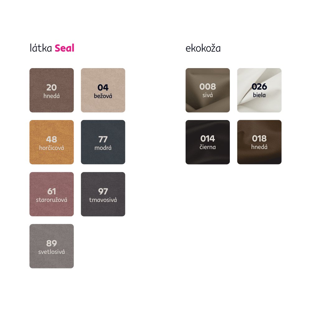 Ponúkame vám možnosť objednať si sedačku v 4 farebných prevedeniach ekokože a v 7 farebných prevedeniach látky Seal v cene: 869 Eur. Pri individuálnej objednávke je potrebné zaplatiť 20% zálohu z danej sumy. Po uhradení zálohy bude Vaša požiadavka zadaná do výroby. Doba dodania 6-8 týždňov.