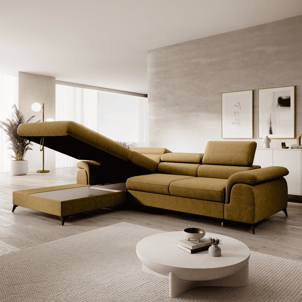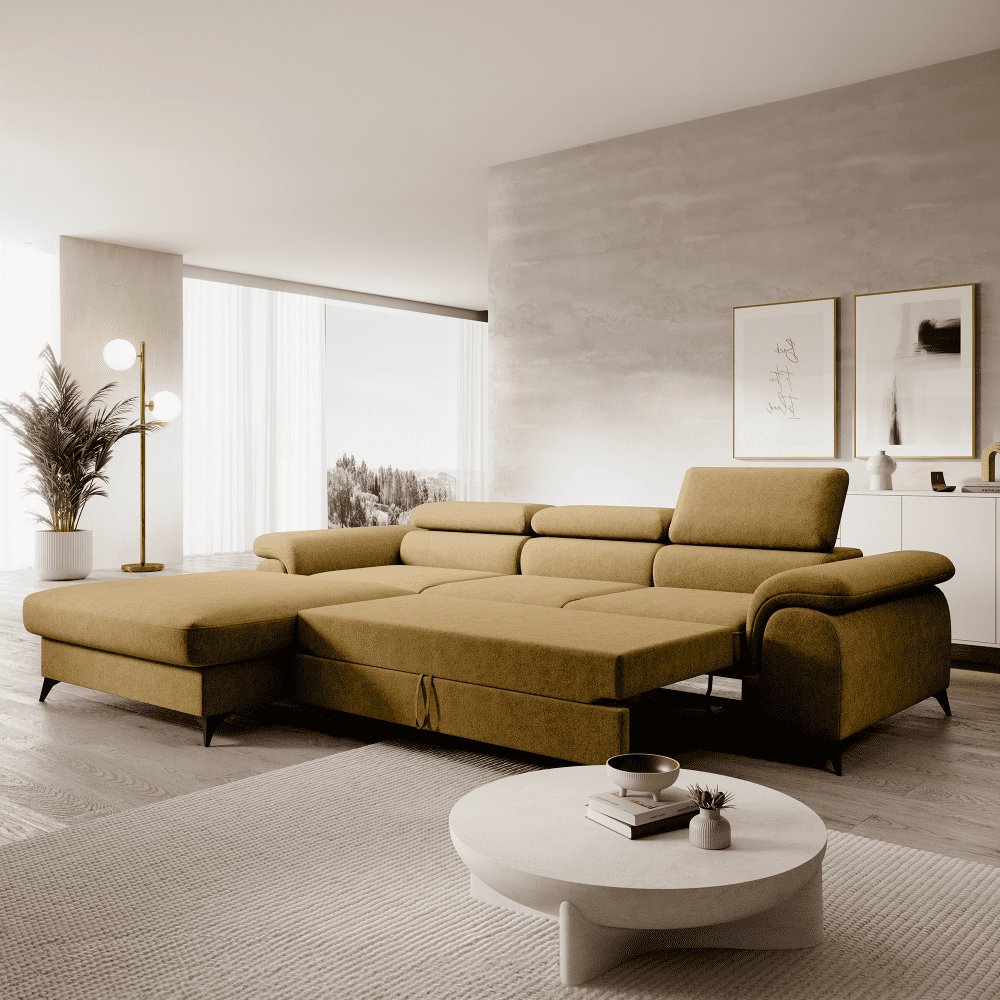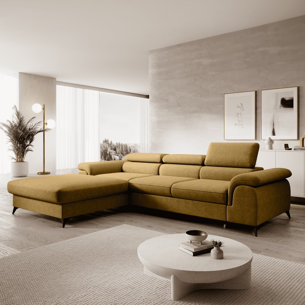KONDELA Rozkladacia sedacia súprava, horčicová, ľavá, HORTY ROH