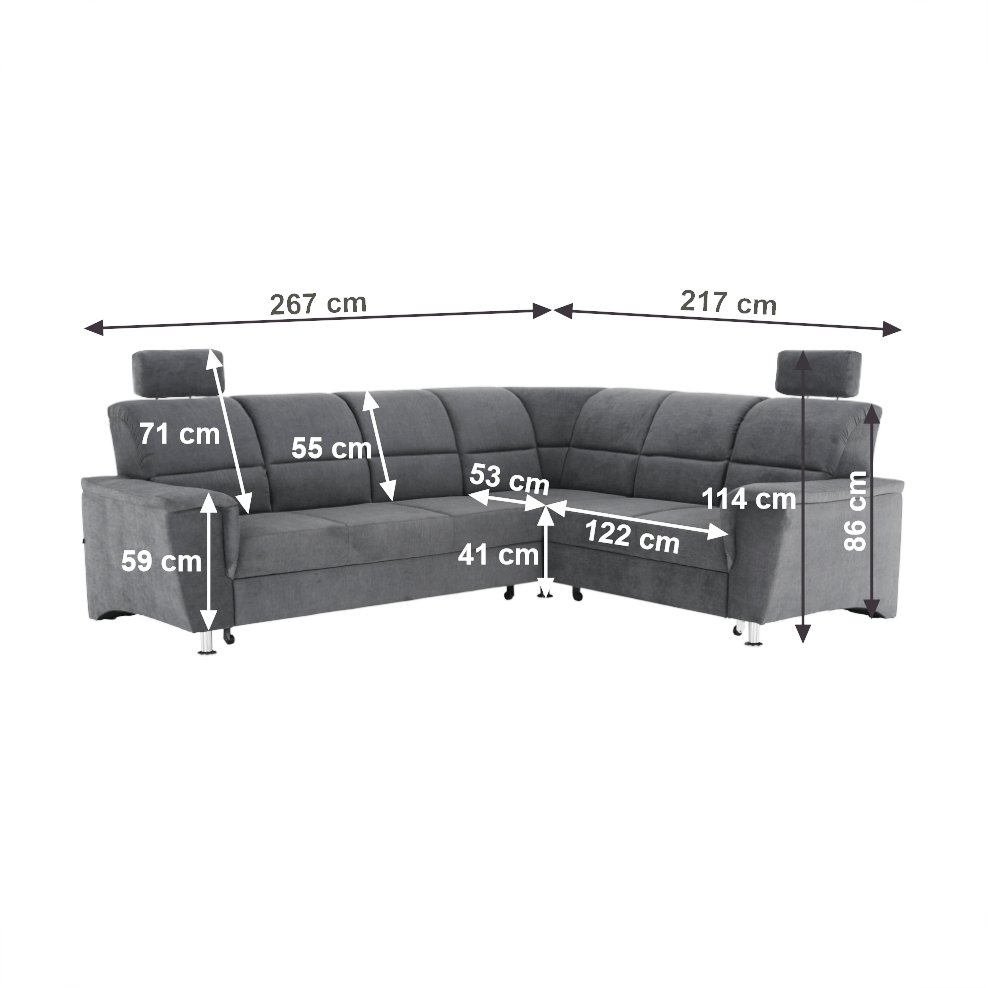 Rozmery (ŠxHxV): 267x217x86/114 cm