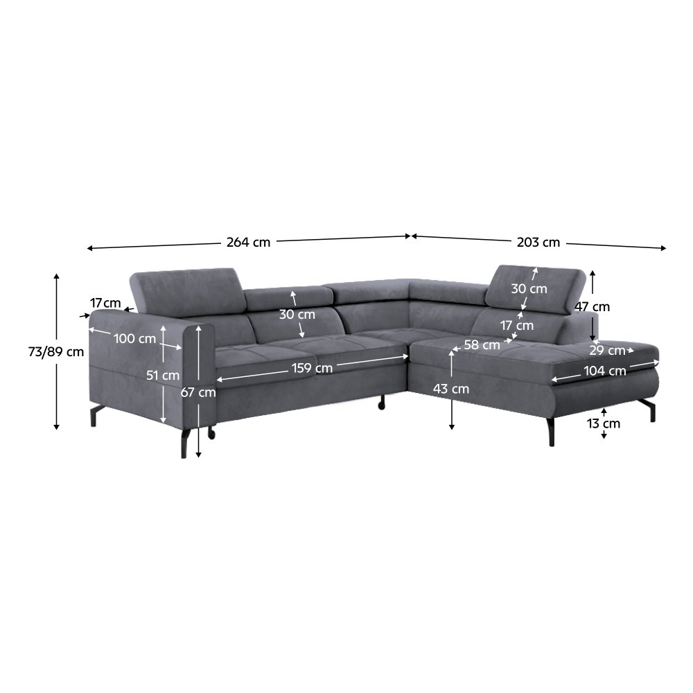 Rozmery (ŠxHxV): 264x203x73/89 cm