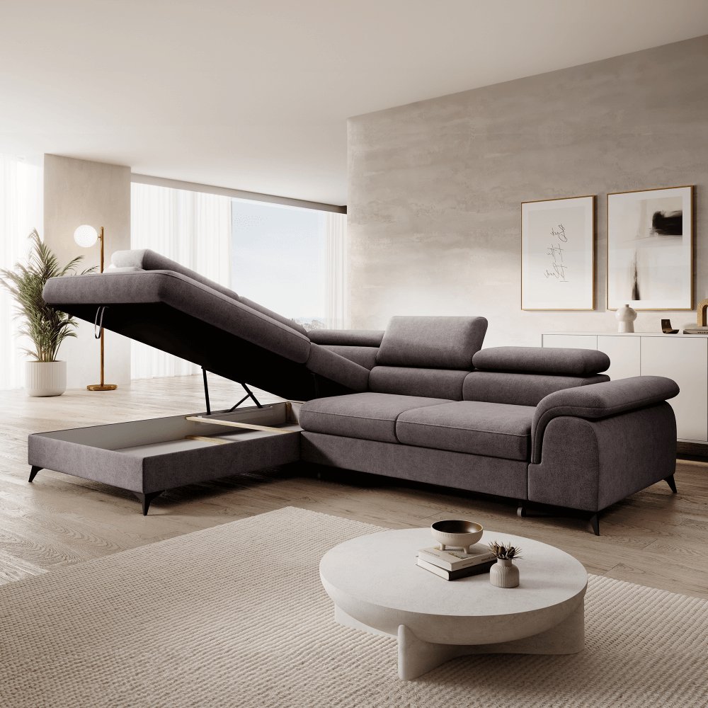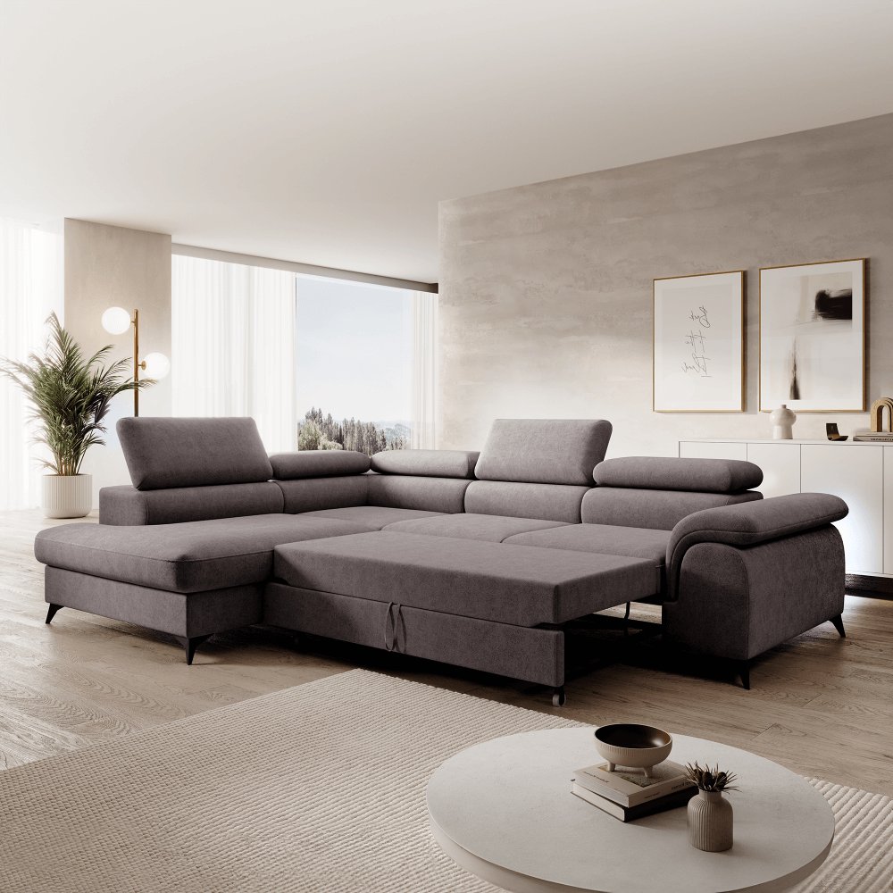 KONDELA Rozkladacia sedacia súprava, sivohnedá, ľavá, PONY ROH