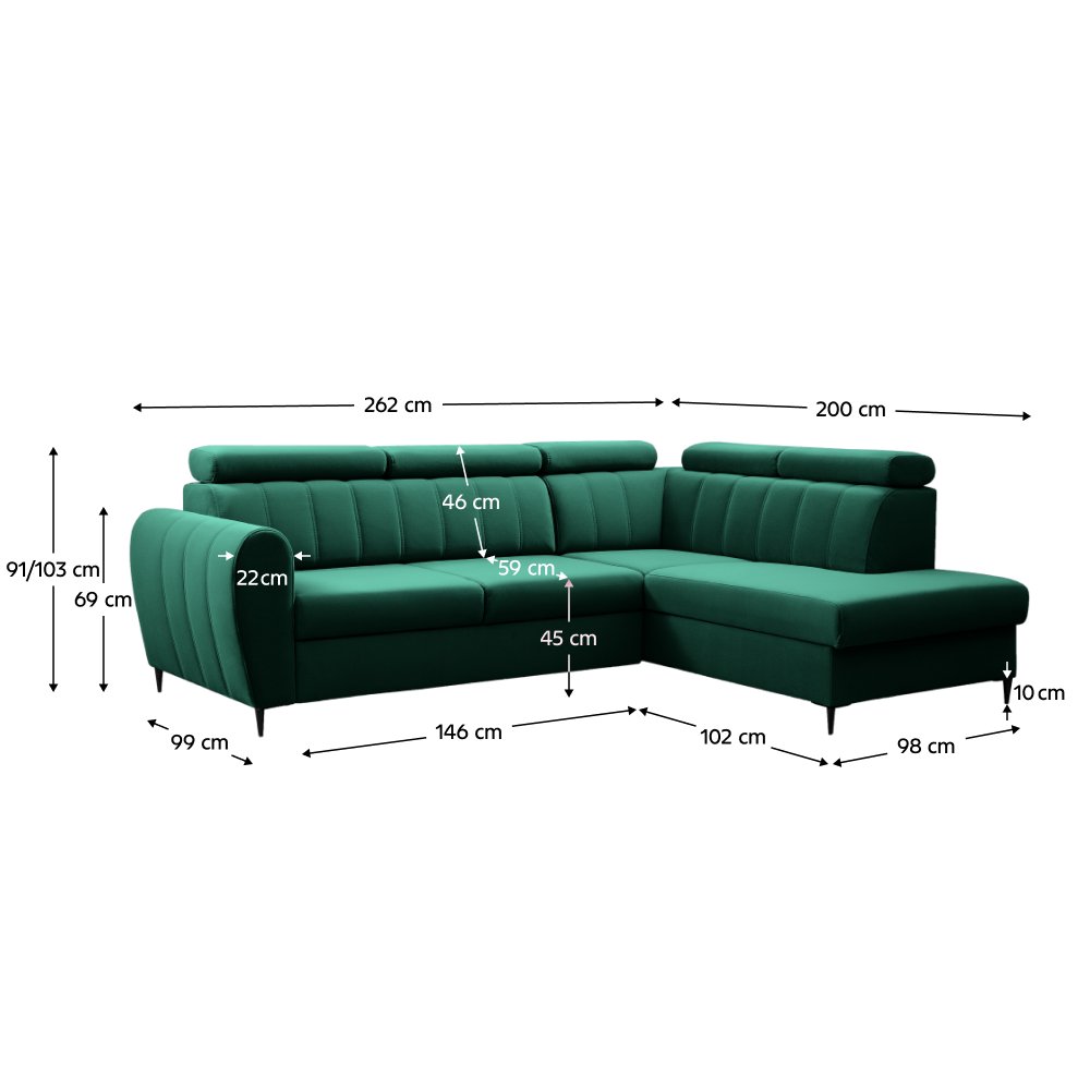 KONDELA Rozkladacia sedacia súprava, smaragdová, pravá, KORIO L