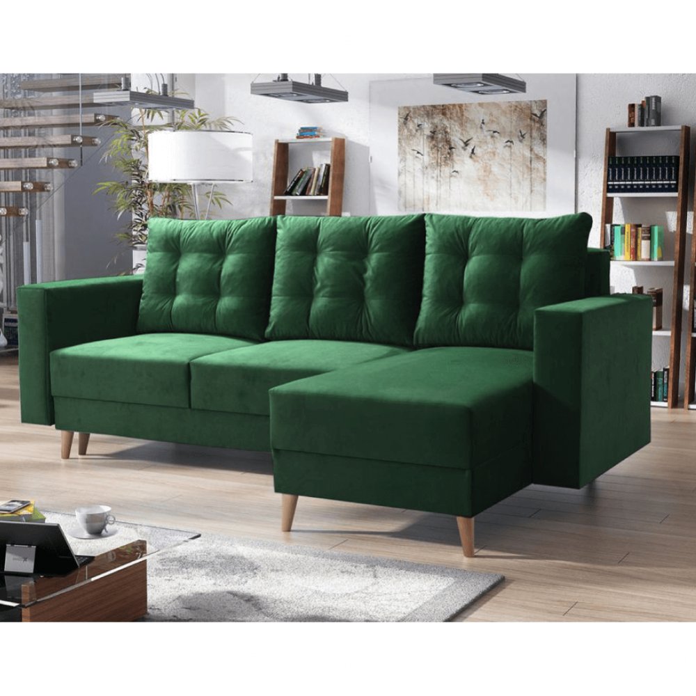 KONDELA Rozkladacia sedacia súprava, zelená, pravá, BLEKY ROH