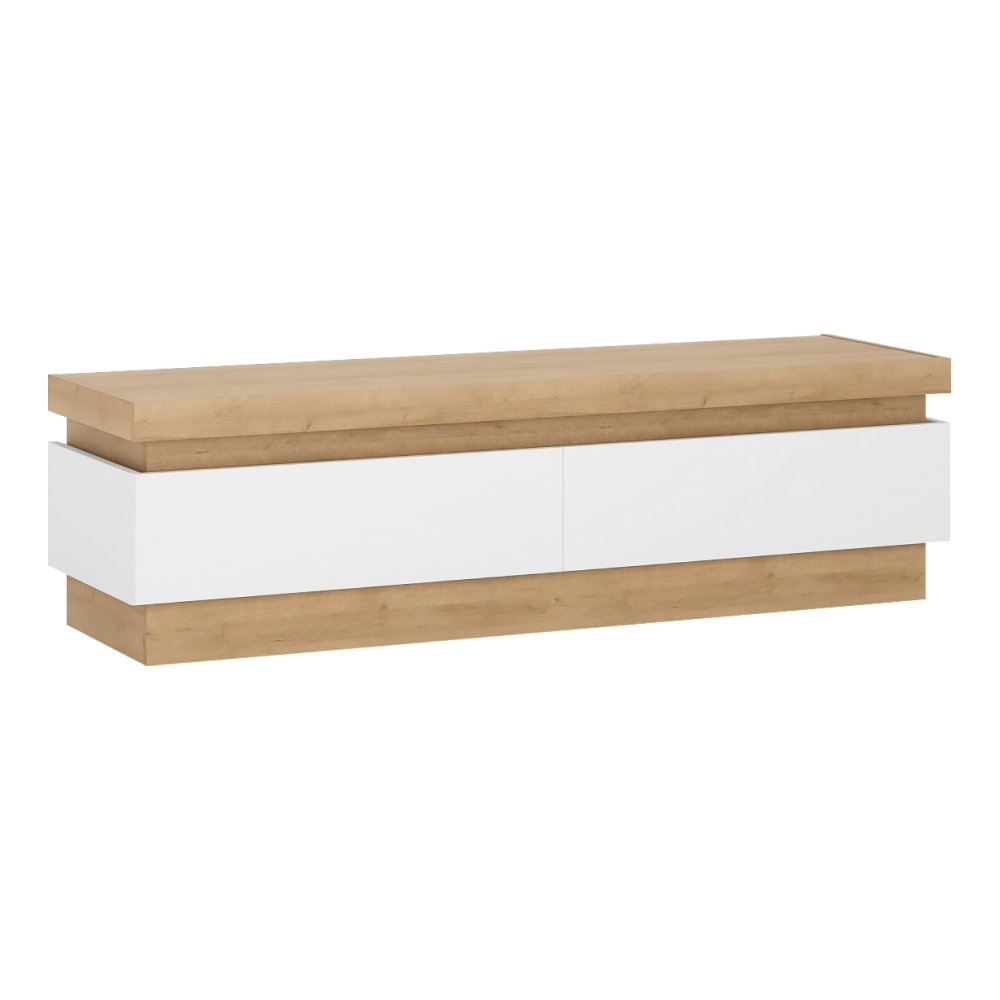 KONDELA RTV stolík 01, dub riviéra/biela s extra vysokým leskom, LEONARDO
