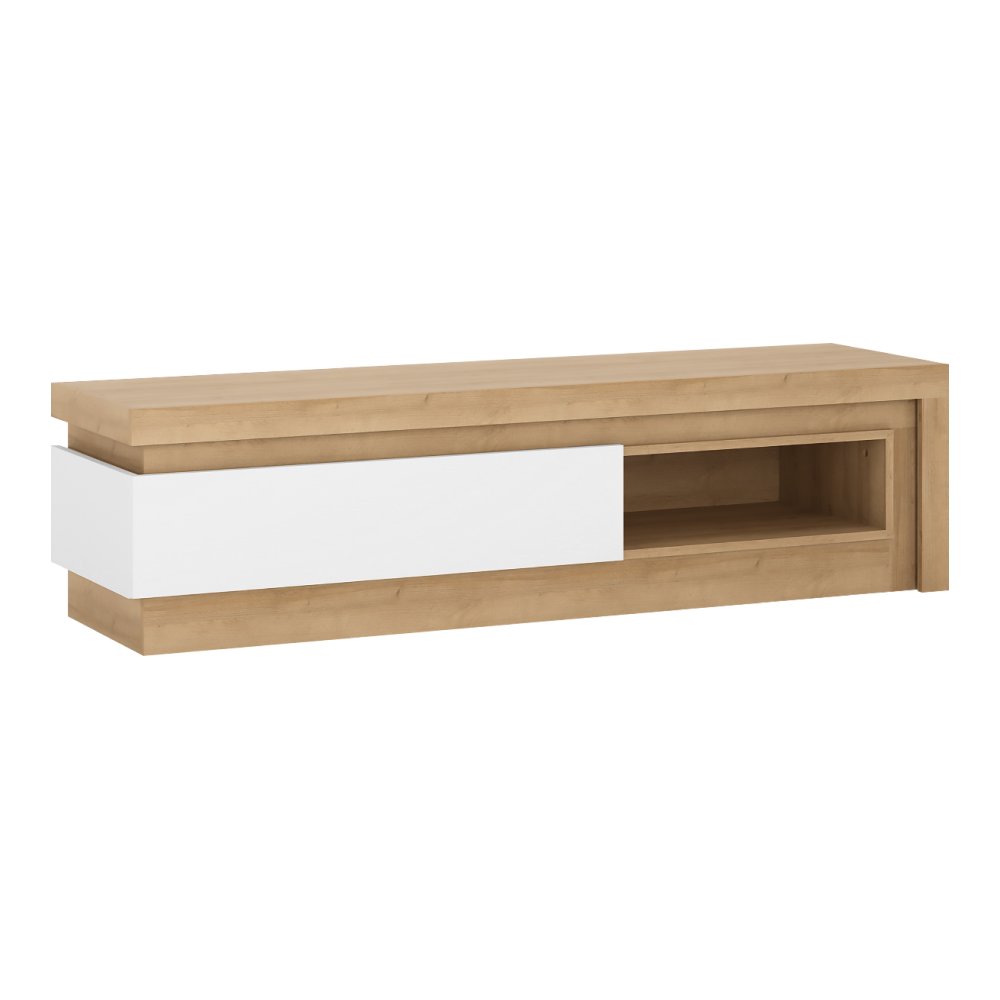 KONDELA RTV stolík 02, dub riviéra/biela s extra vysokým leskom, LEONARDO