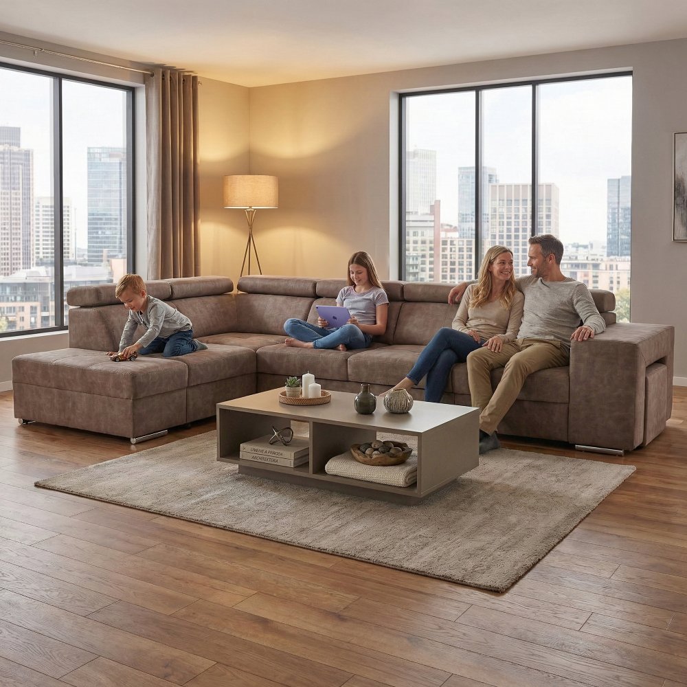 KONDELA Sedacia súprava, béžová, ľavá, MALAGA BIG