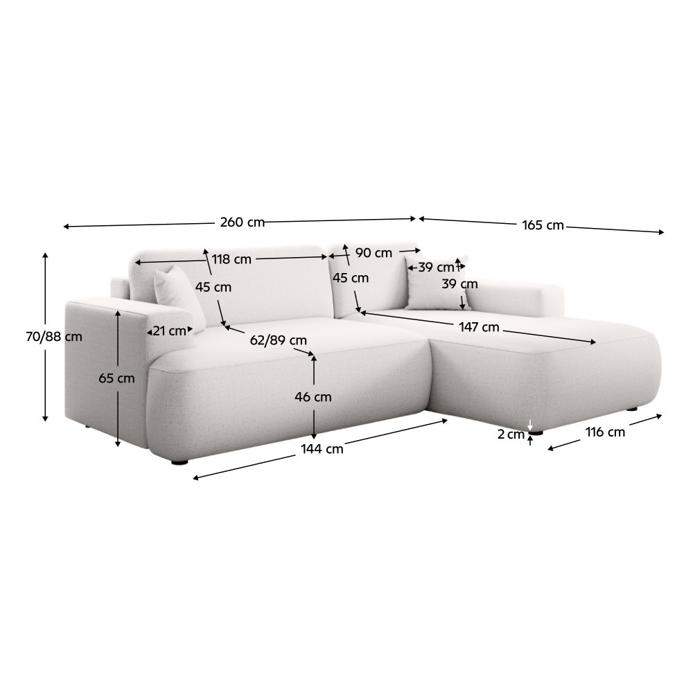 Rozmery (ŠxHxV): 260x165x70/88 cm