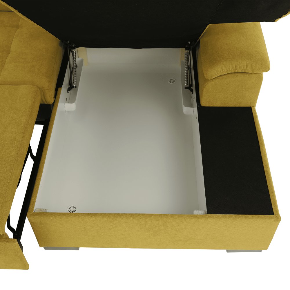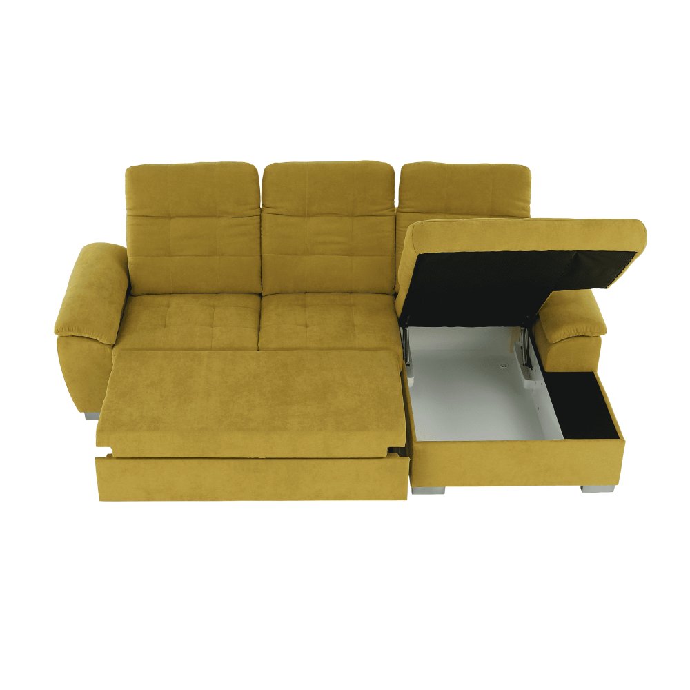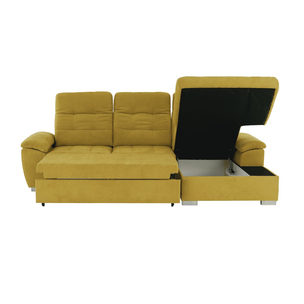 Rohová celočalúnená rozkladacia sedacia súprava s úložným priestorom EVANGELIN
