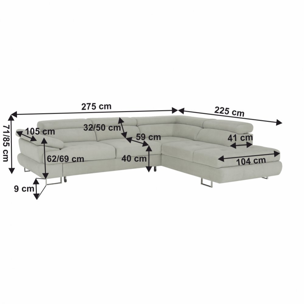 Rozmery (ŠxHxV): 275x225x71/85 cm.