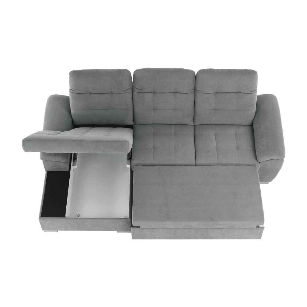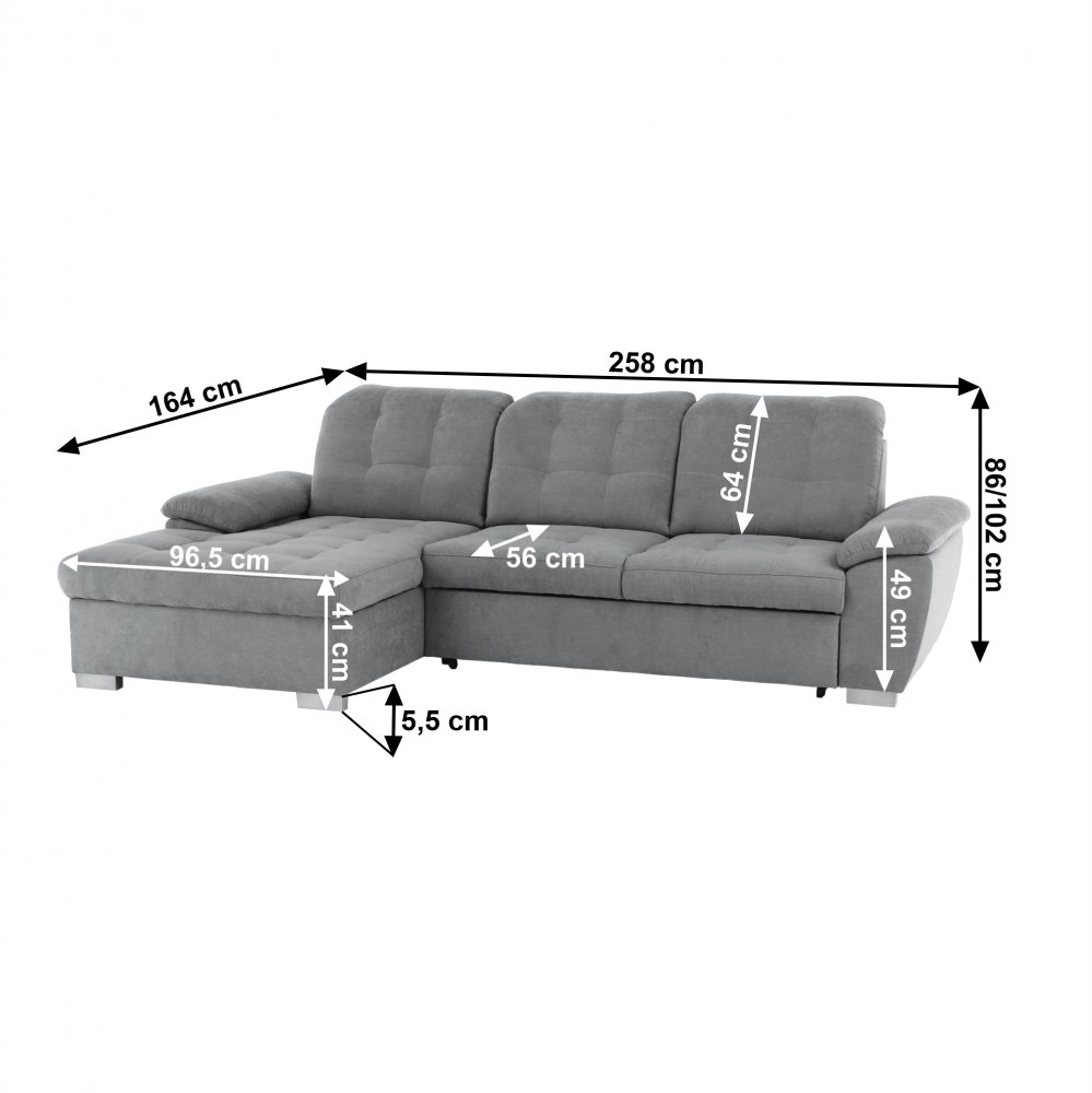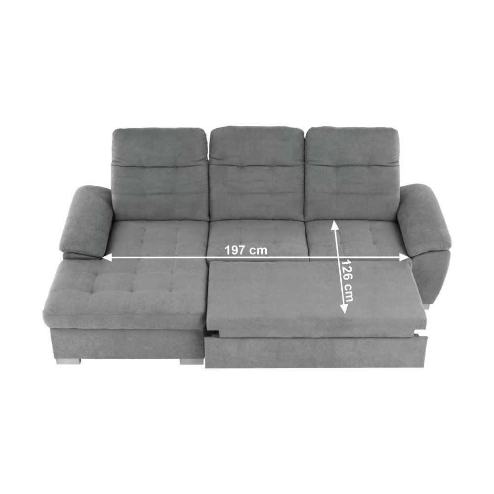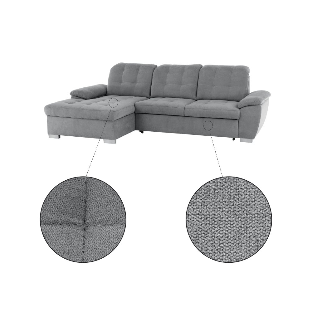 Rohová celočalúnená rozkladacia sedacia súprava s úložným priestorom EVANGELIN
