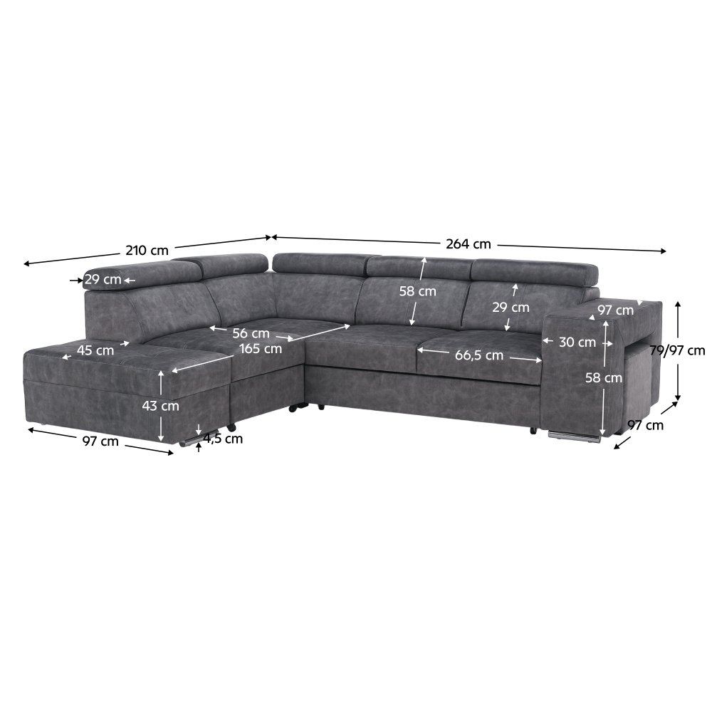 Rozmery (ŠxHxV): 264x210x79/97 cm