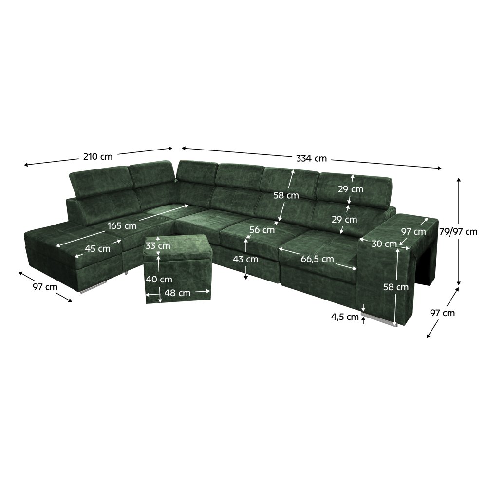 Rozmery (ŠxHxV): 334x210x79/97 cm