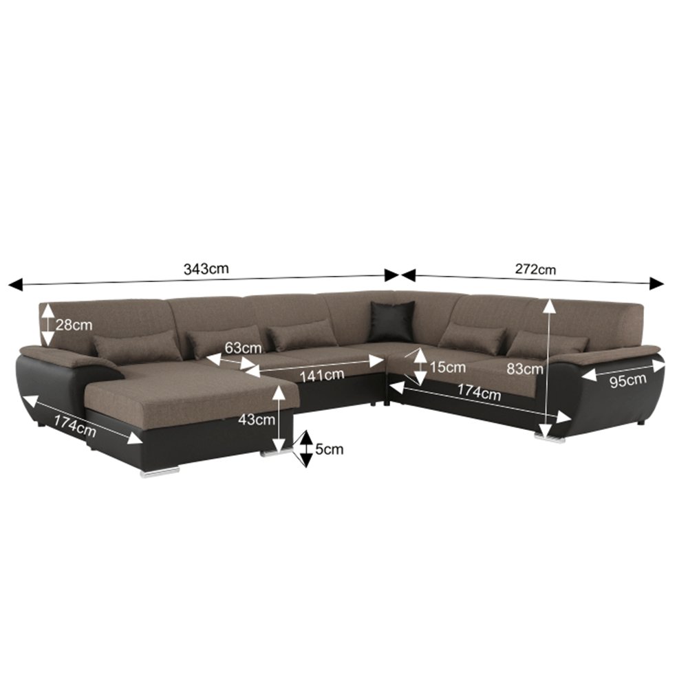 Rozmery (ŠxVxH): 343x83x272/174, plocha na spanie (DxŠ): 275x129 cm.