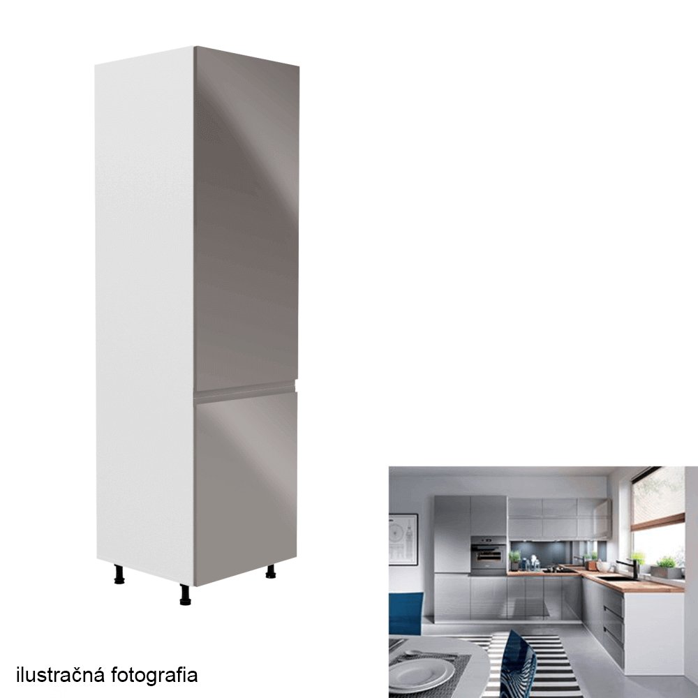 KONDELA Skrinka na chladničku, biela/sivá extra vysoký lesk, pravá, AURORA D60ZL