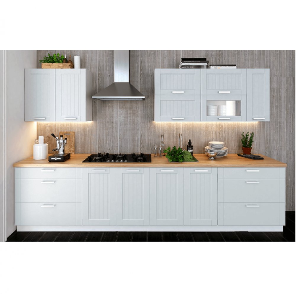 Skrinky sú dodávané bez pracovnej dosky. Pracovnú dosku v prevedení gold craft oak v hrúbke 38 mm je možné doobjednať v cene 49 Eur/1 bm.
