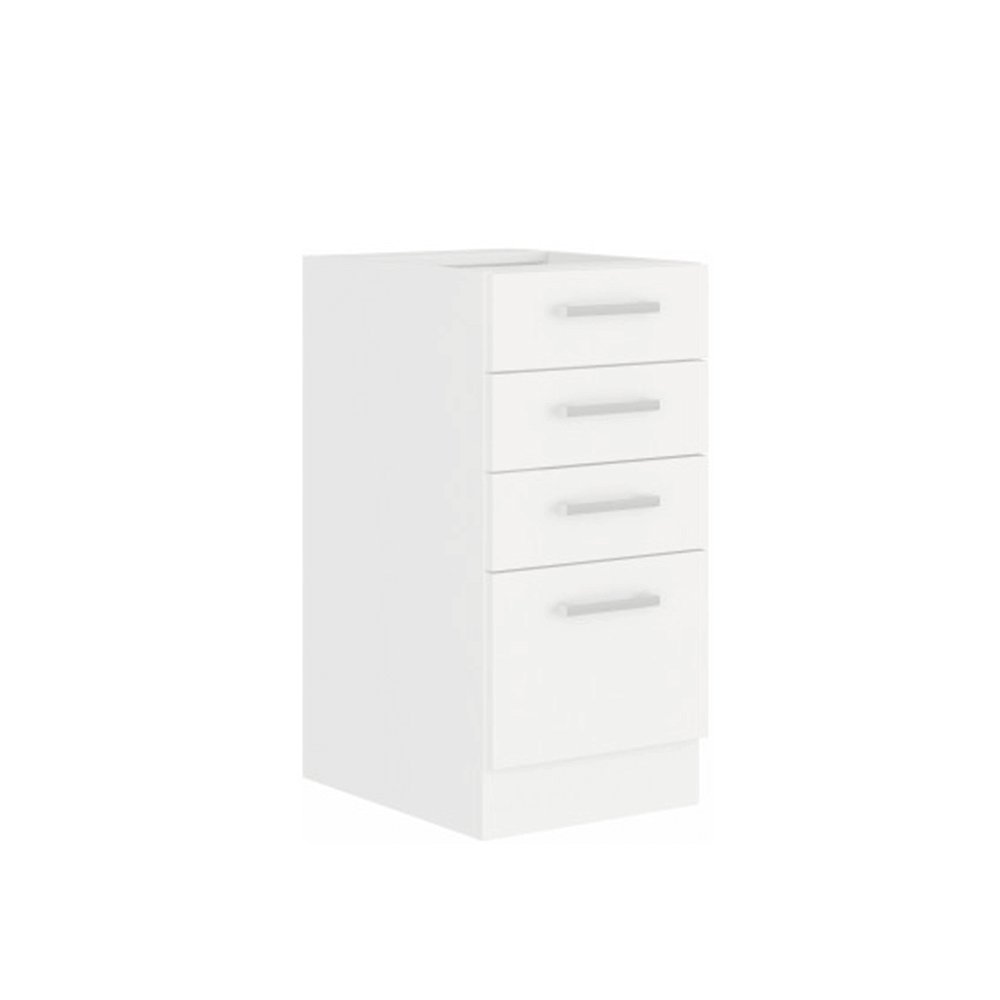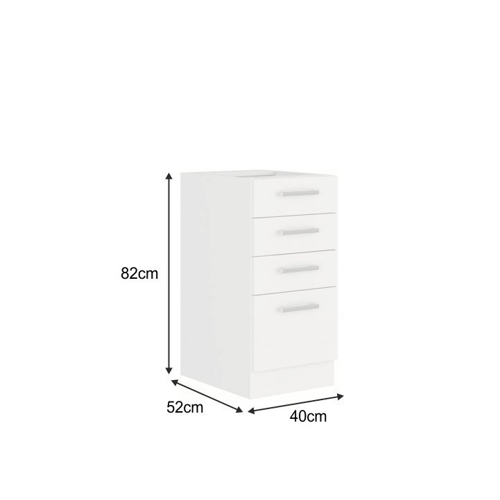 Spodné skrinky sú dodávané vrátane dolnej lišty. Pracovná doska nie je súčasťou skriniek. Je možné si doobjednať pracovnú dosku v prevedení dub lancelot za 59 eur/bm. Možnosť dokúpenia univerzálneho Ľ/P drezu LAY ON.
