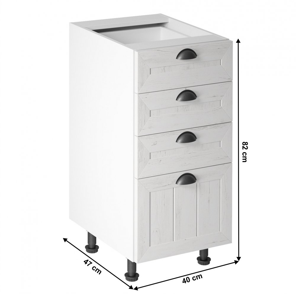 KONDELA Spodná skrinka so štyrmi šuplíkmi D40S4, biela/sosna andersen, PROVANCE
