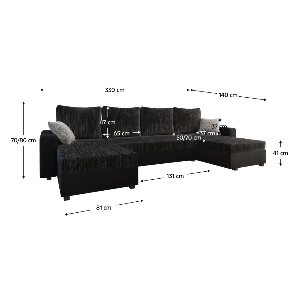 Rozmery (ŠxHxV): 330x140x70/80 cm