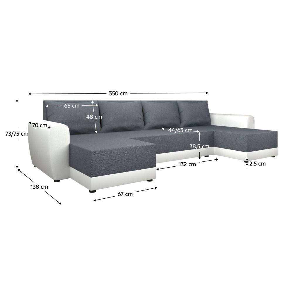 Rozmery (ŠxHxV): 350x138/138x73/75 cm