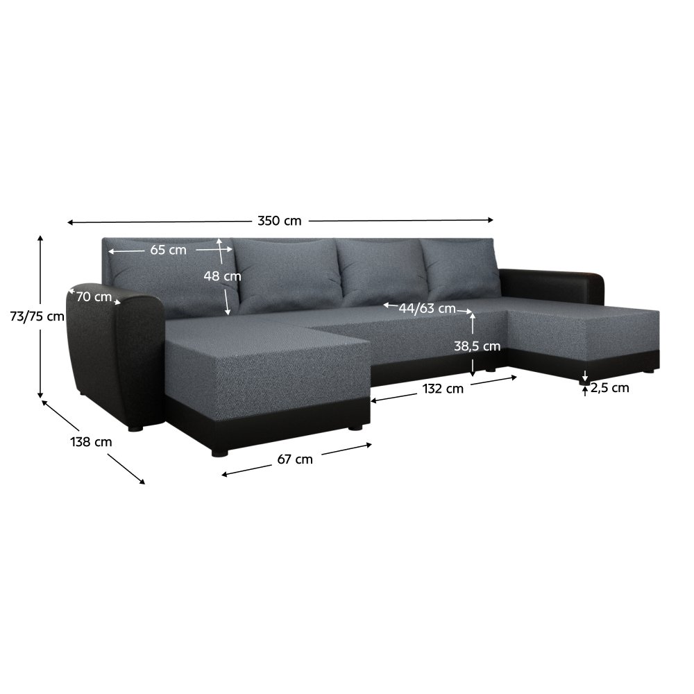 Rozmery (ŠxHxV): 350x138/138x73/75 cm