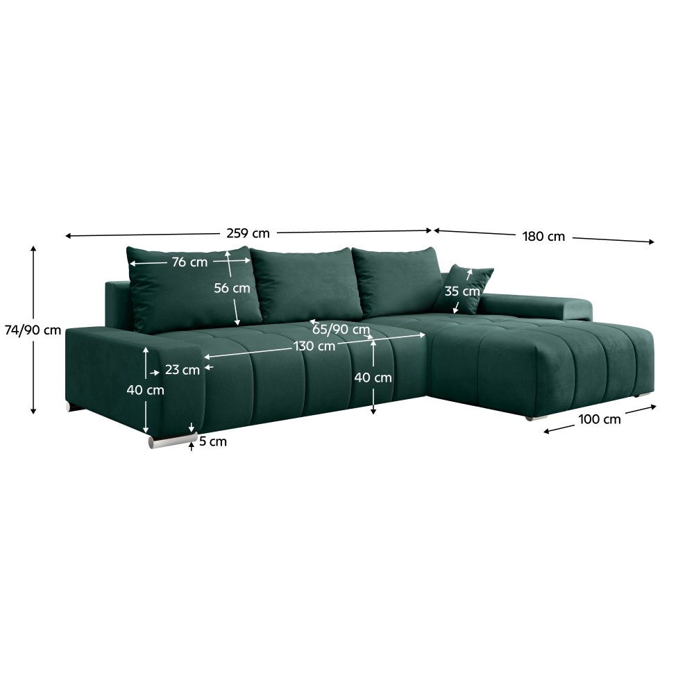Rozmery (ŠxHxV): 259x180x74/90 cm