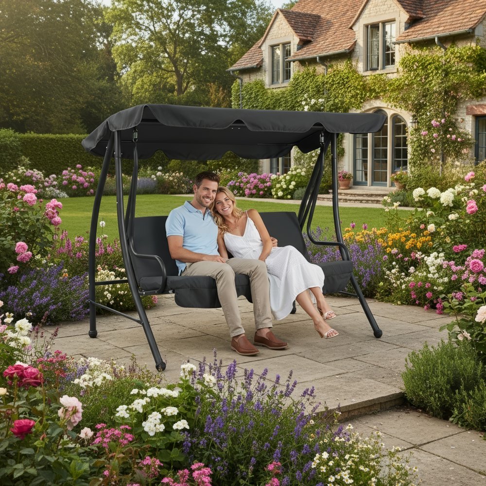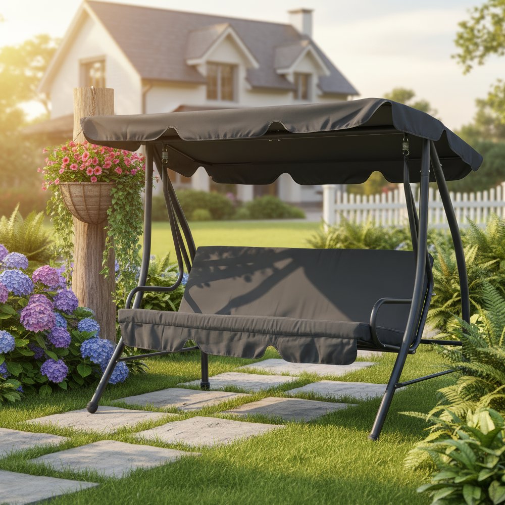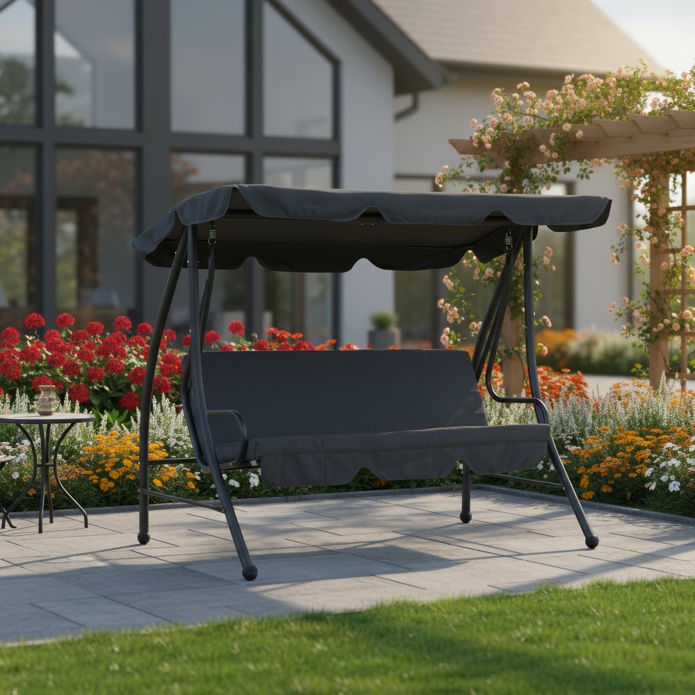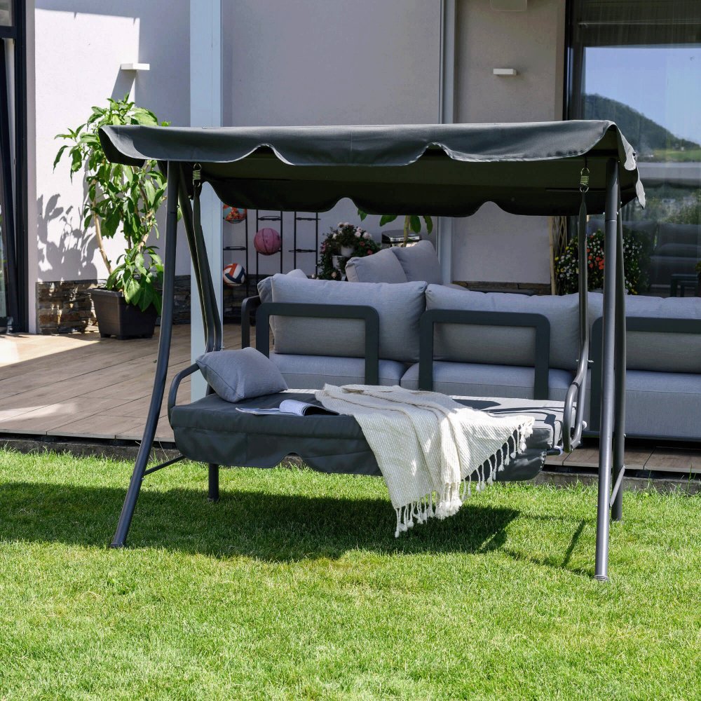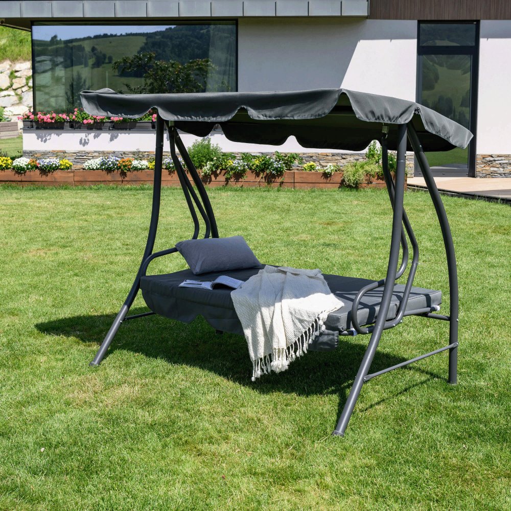 KONDELA Záhradná hojdačka, sivá, KEMI