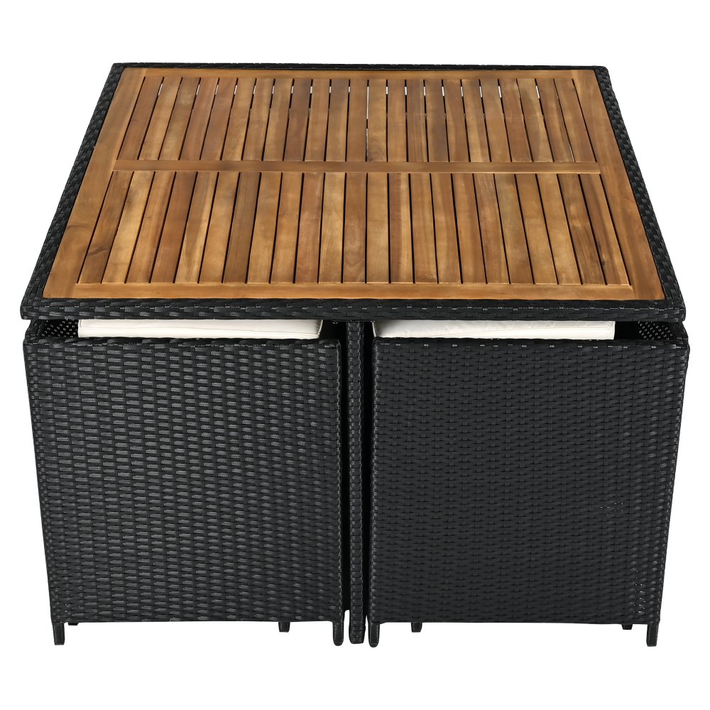 Materiál: technický ratan/oceľ/látka/masívne akáciové drevo