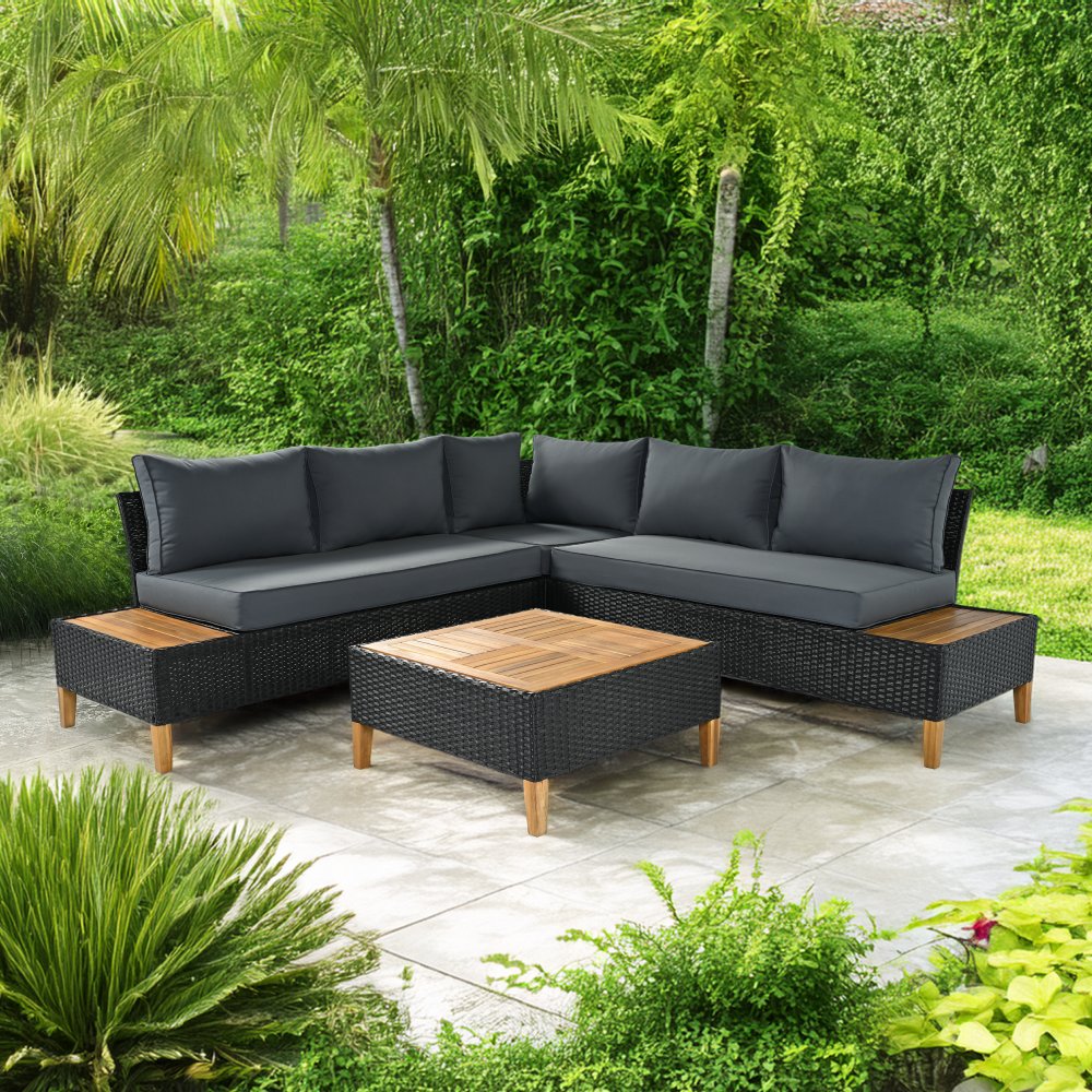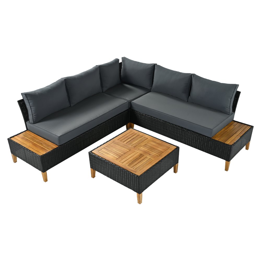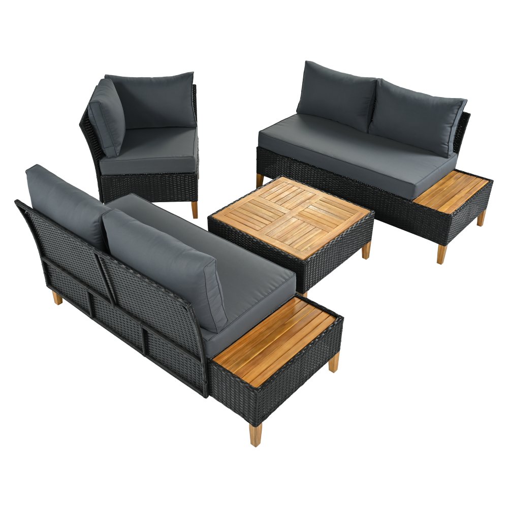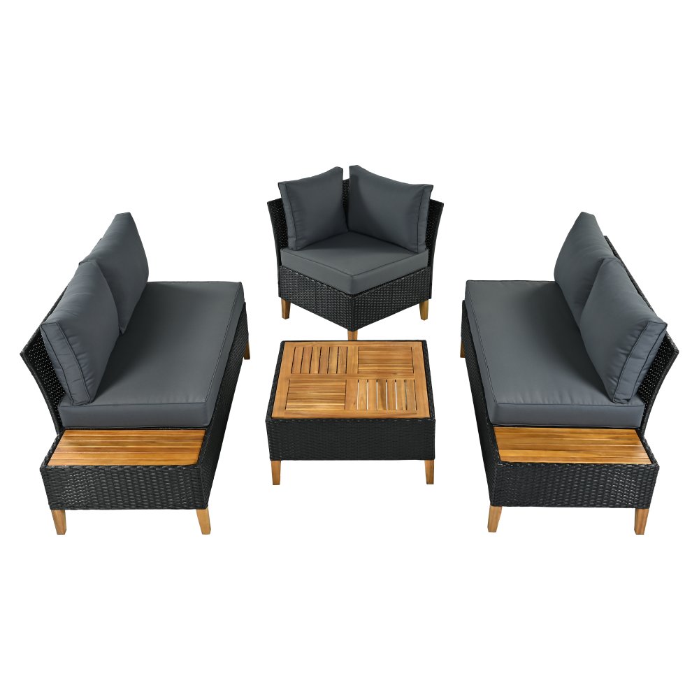Materiál: technický ratan/oceľ/látka/masívne akáciové drevo