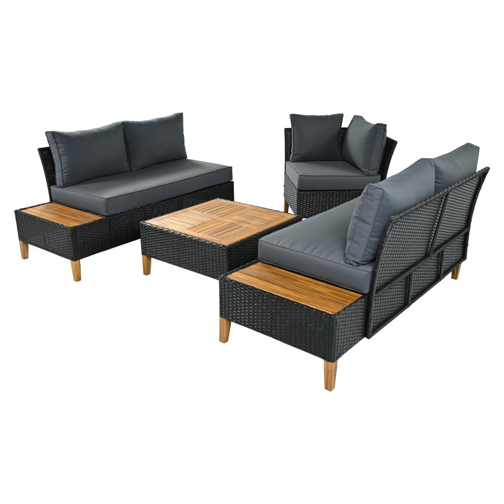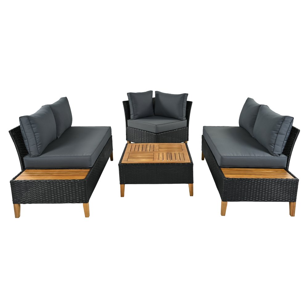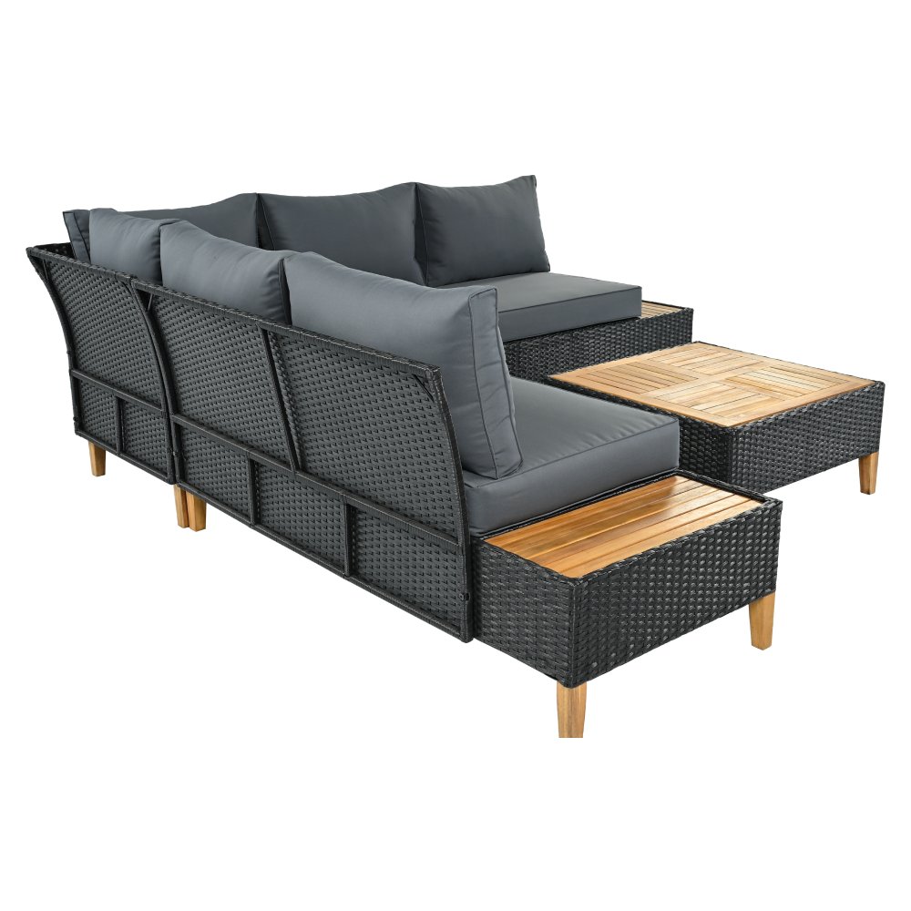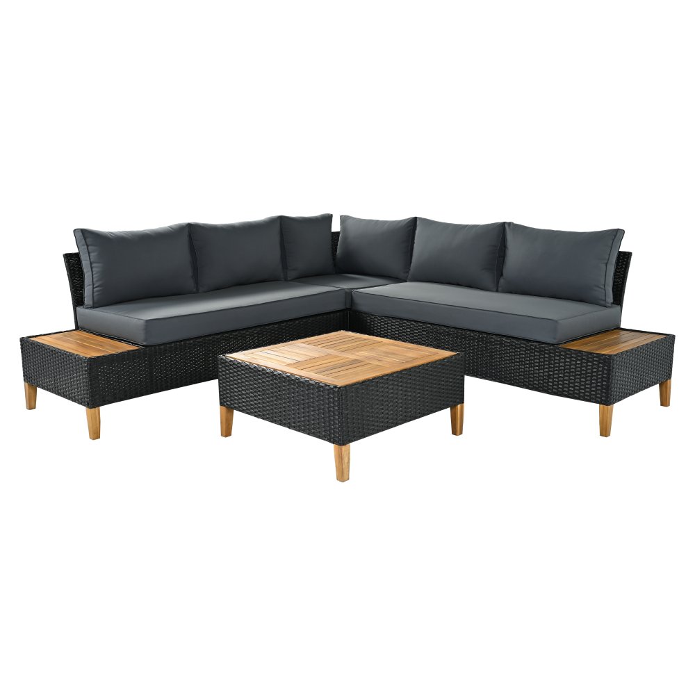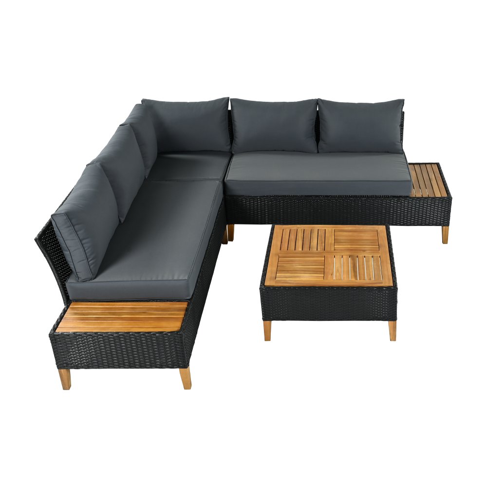 Materiál: technický ratan/oceľ/látka/masívne akáciové drevo