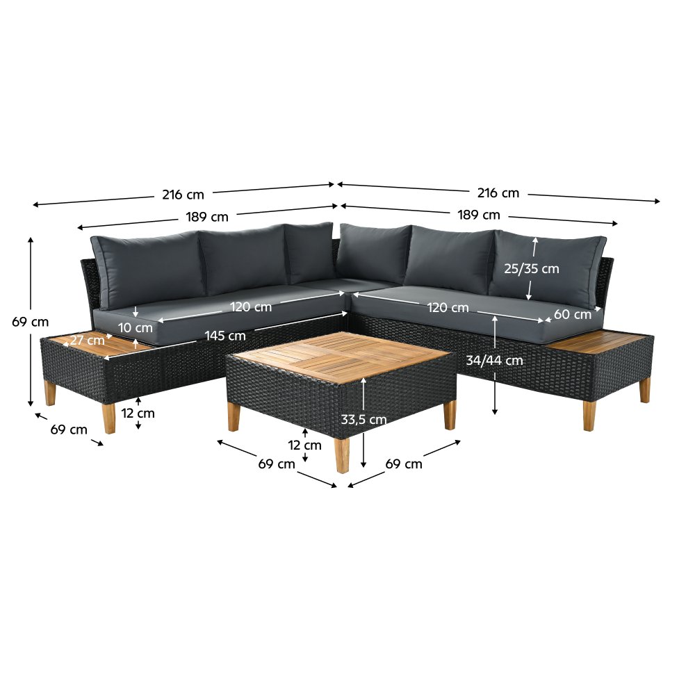 Rozmery (ŠxHxV): 216/216x69x69 cm