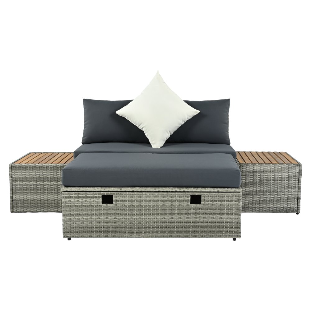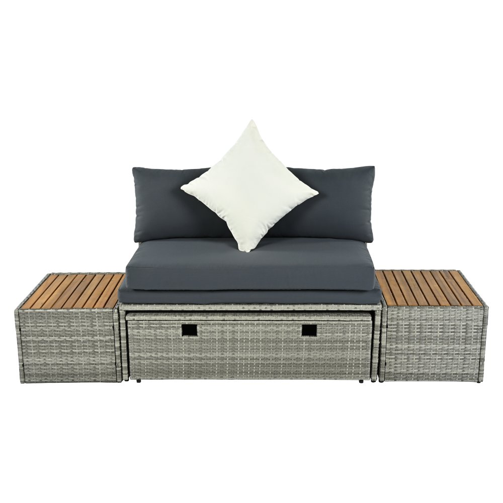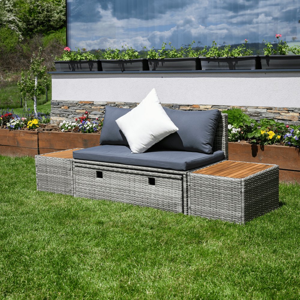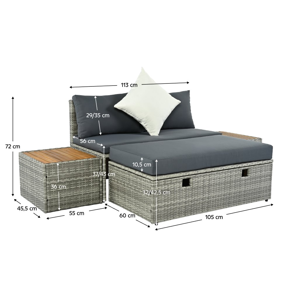 Materiál: technický ratan/oceľ/látka/akáciové drevo