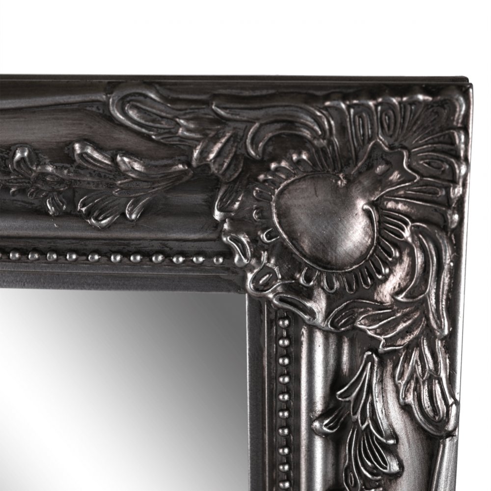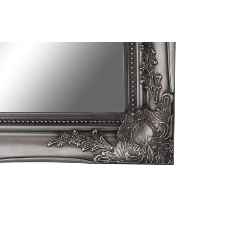 Zrkadlo MALKIA TYP 7 s dreveným rámom striebornej farby.