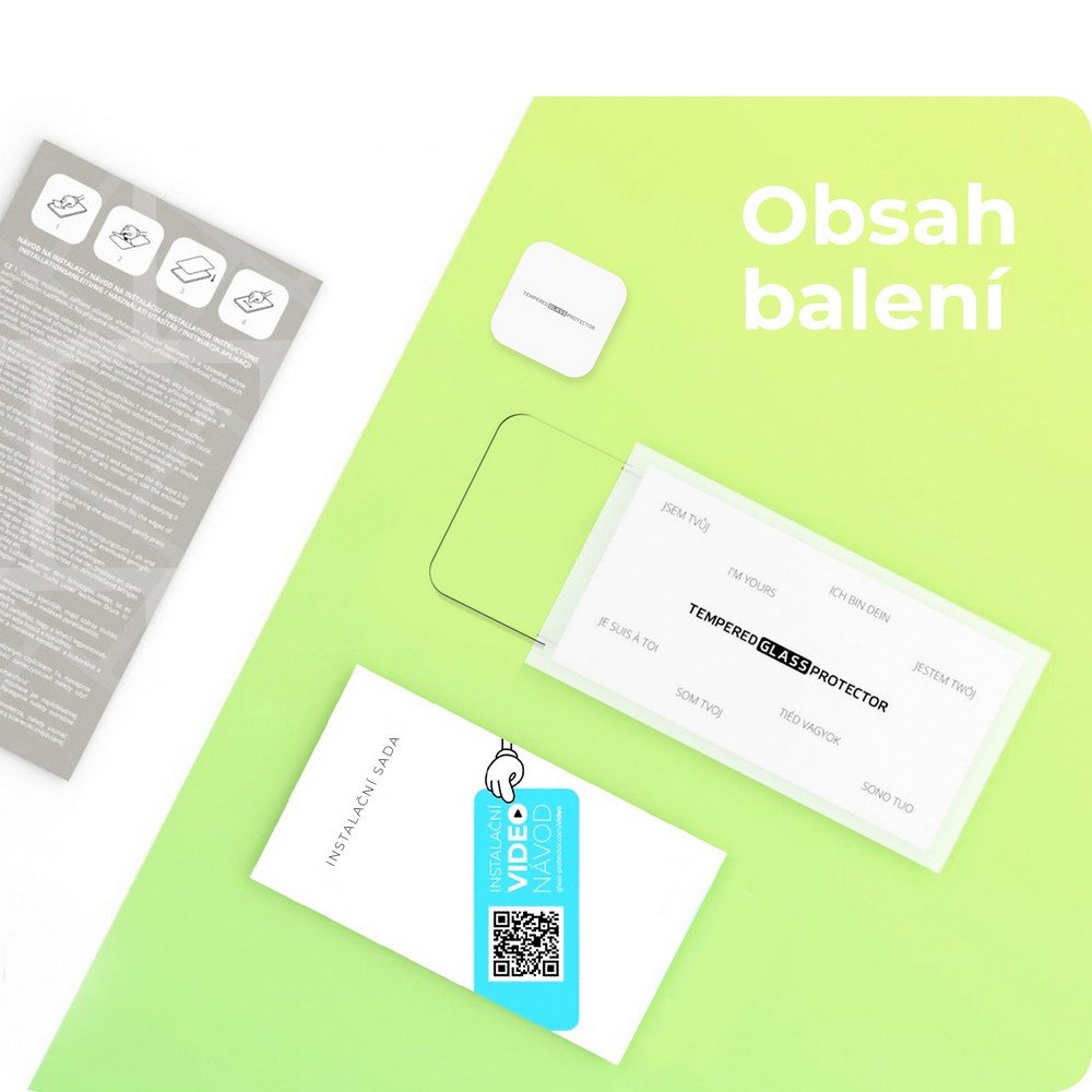 Ochranné sklo na displej + zadnú kameru, kompatibilné s obalom na smartfón, zaoblené hrany, vysoká tvrdosť 9H, zachovanie citlivosti displeja, nerušivý vzhľad, inštalačná sada